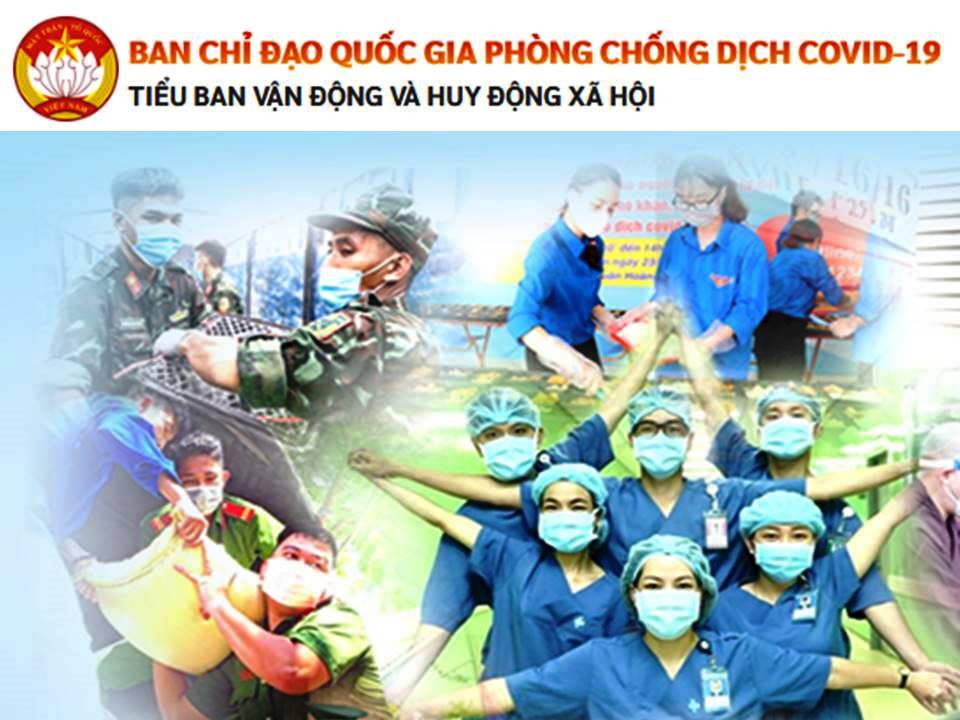 Vận động nguồn lực cùng chung tay ủng hộ công tác phòng, chống dịch bệnh Covid-19 (28/09/2021 10:41)Giới thiệu tuyên truyền các hoạt động thường xuyên của Tiểu ban Vận động và huy động xã hội, Ban Chỉ đạo quốc gia phòng, chống dịch COVID-19.