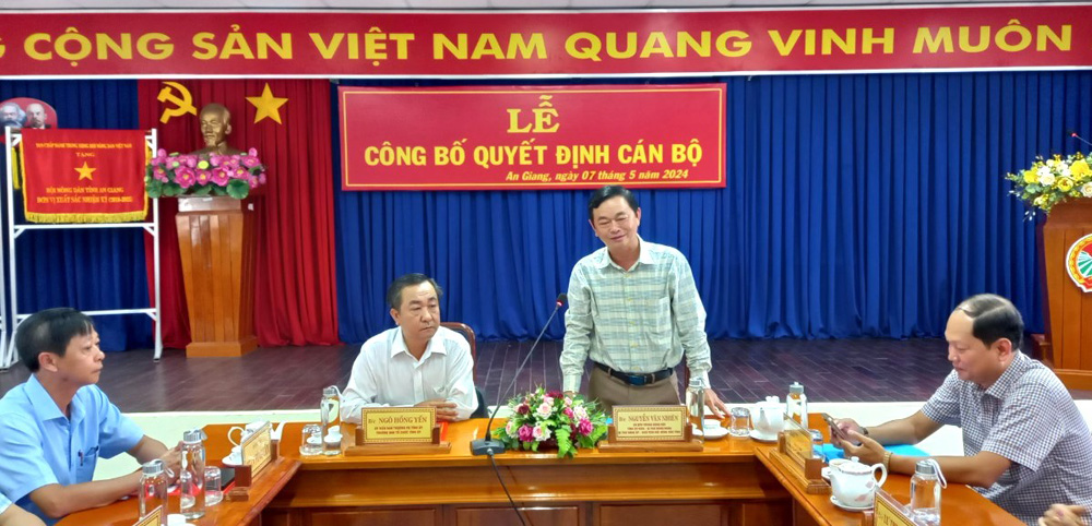 Ban Tổ chức tỉnh ủy phối hợp với Hội Nông dân công bố quyết định của Ban Thường vụ Tỉnh ủy về công tác cán bộ. (07/05/2024 15:44)Chiều ngày 7/5, Ban Tổ chức Tỉnh ủy An Giang, Đảng ủy Khối Cơ quan và Doanh nghiệp tỉnh An Giang phối hợp Hội Nông dân tỉnh An Giang tổ chức Lễ công bố cán bộ thuộc diện Ban Thường vụ Tỉnh ủy quản lý.