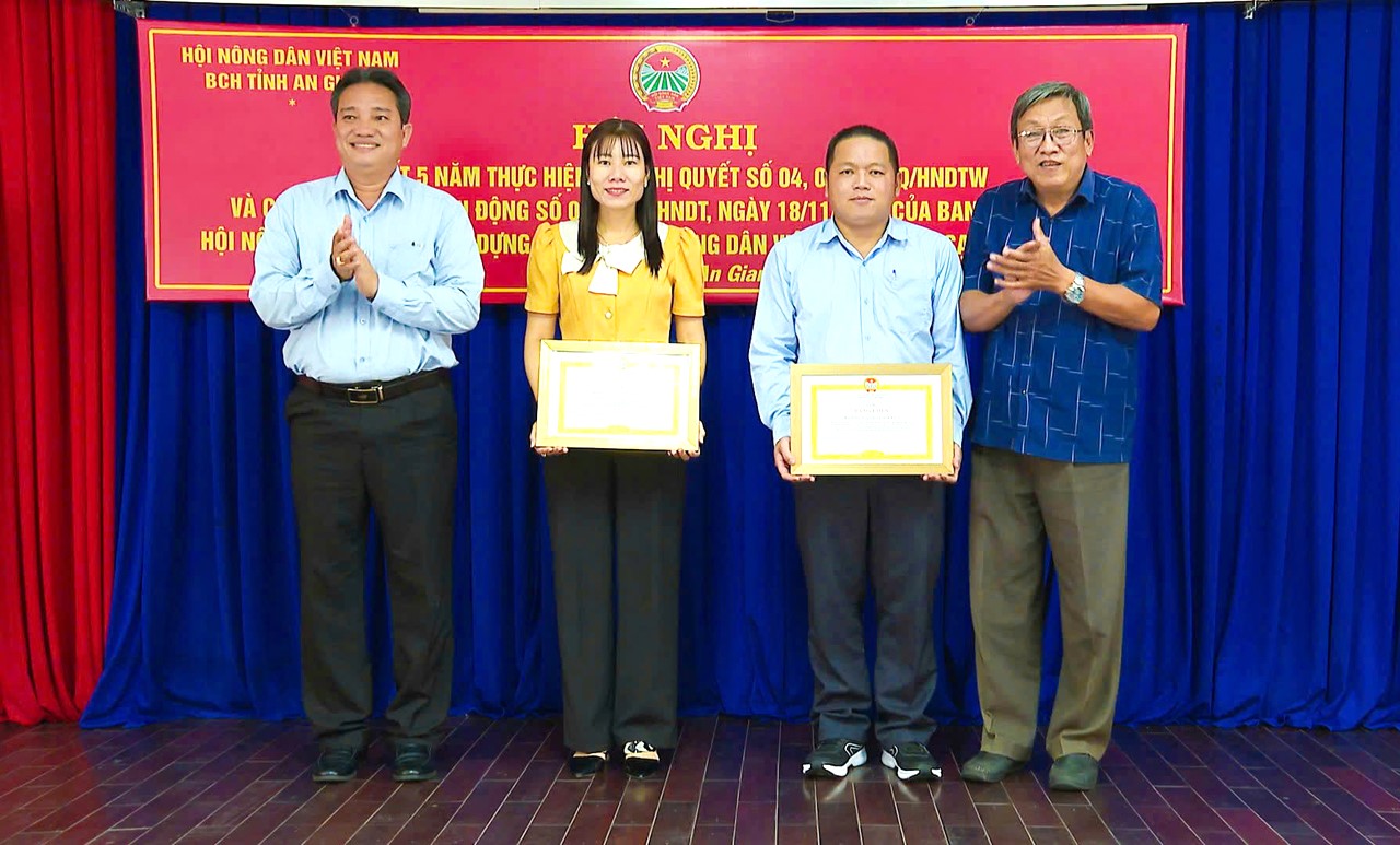 Nâng cao vai trò Hội Nông dân trong phát triển kinh tế tập thể (03/12/2024 10:46)UBND tỉnh An Giang vừa ban hành Kế hoạch 1215/KH-UBND để thực hiện Quyết định 182/QĐ-TTg của Thủ tướng Chính phủ về phê duyệt Đề án “Hội Nông dân Việt Nam tham gia phát triển kinh tế tập thể trong nông nghiệp đến năm 2030” trên địa bàn tỉnh An Giang, nhằm nâng cao vai trò Hội Nông dân trong tham gia phát triển kinh tế tập thể (KTTT) thời gian tới.