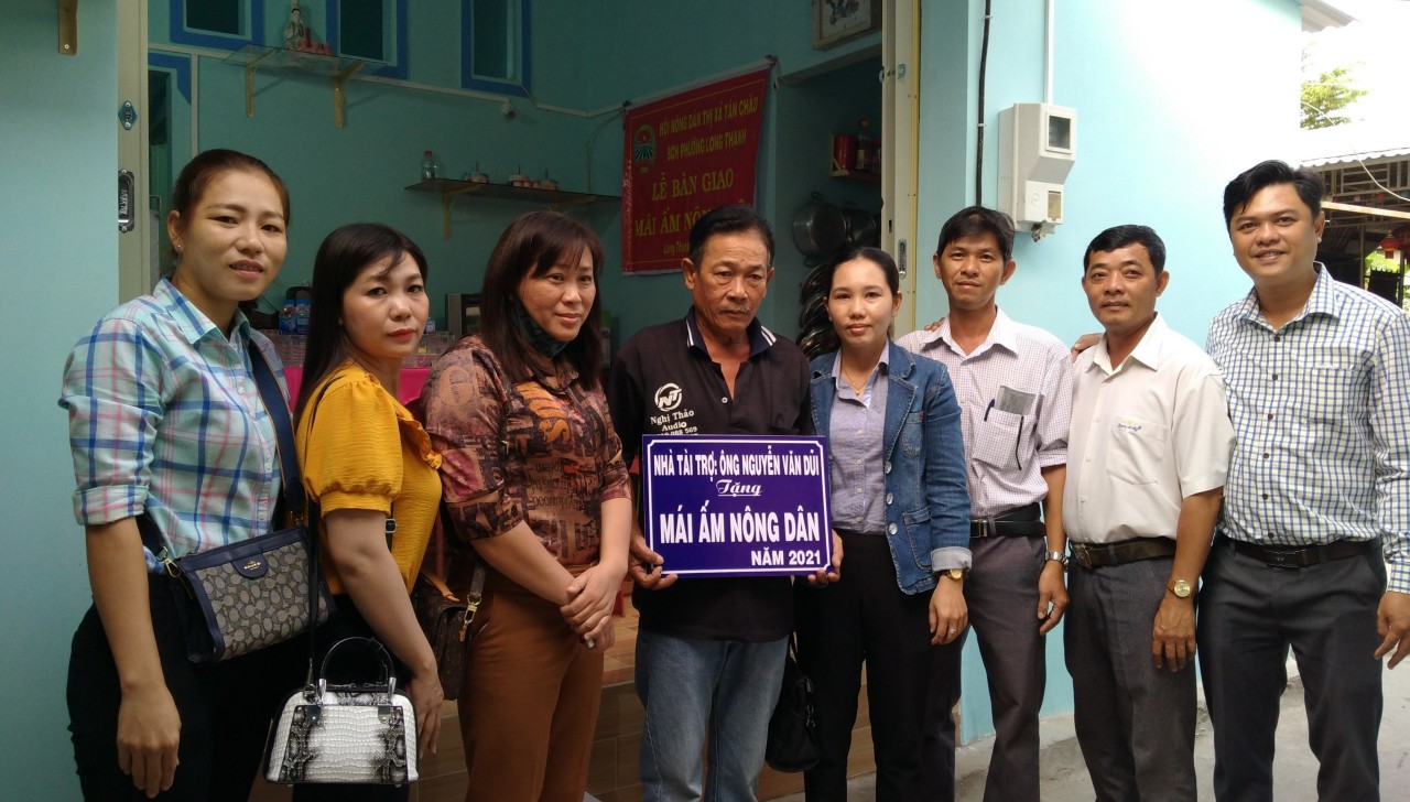 Trao tặng mái ấm nông dân (04/02/2021 16:00)Sáng ngày 2/2/2021 Hội Nông dân phường Long Thạnh thị xã Tân Châu tổ chức lễ bàn giao nhà Mái ấm nông dân năm 2021 cho hộ ông Mã Văn Hiệp, là hội viên có hoàn cảnh khó khăn.
