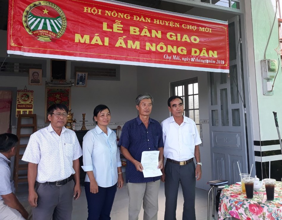 “Mái ấm nông dân” cho hội viên nông dân gặp khó khăn (08/10/2019 15:43)Lập thành tích chào mừng kỷ niệm 89 năm ngày thành lập Hội Nông dân Việt Nam 14/10/1930 - 14/10/2019, Hội Nông dân huyện Chợ Mới đã phát động cuộc vận động ủng hộ Quỹ Hội thực hiện chính sách an sinh xã hội trong tổ chức Hội Nông dân.