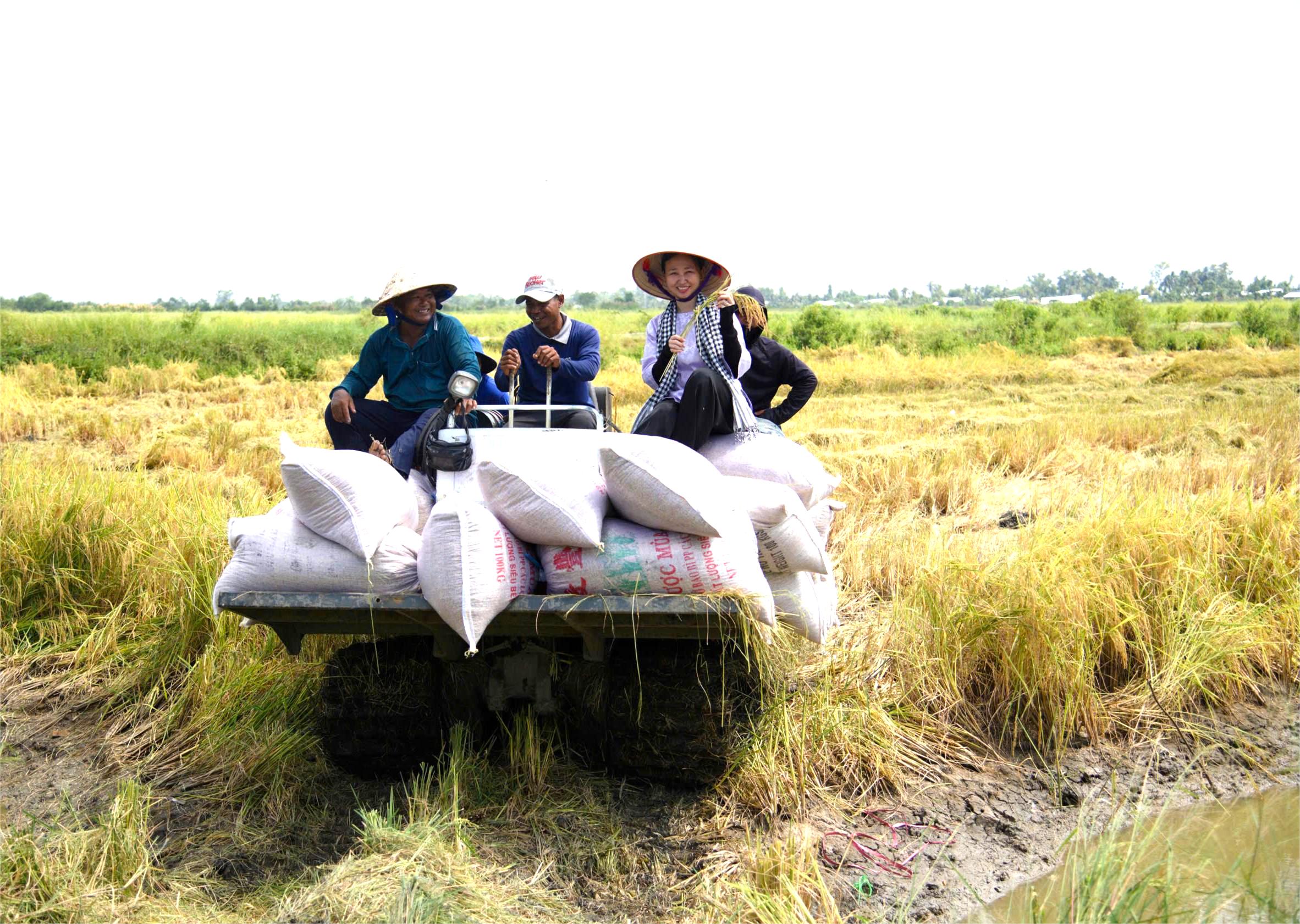 Nông dân xã An Biên thu hoạch lúa vụ mùa 2025
