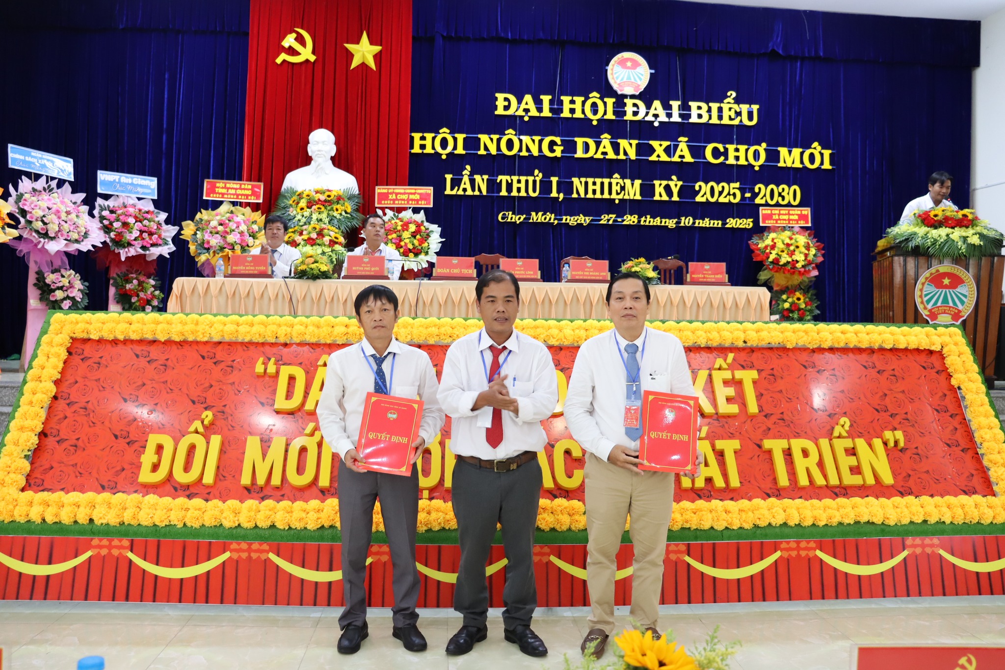 Đại hội đại biểu Hội nông dân xã Chợ Mới đã công bố các quyết định của Ban Thường vụ Hội Nông dân tỉnh, chỉ định 27 người tham gia Ban Chấp hành khóa I; 9 người vào Ban Thường vụ; chỉ định ông Trần Phước Lĩnh giữ chức Chủ tịch Hội Nông dân xã Chợ Mới khóa I, nhiệm kỳ 2025 - 2030.
