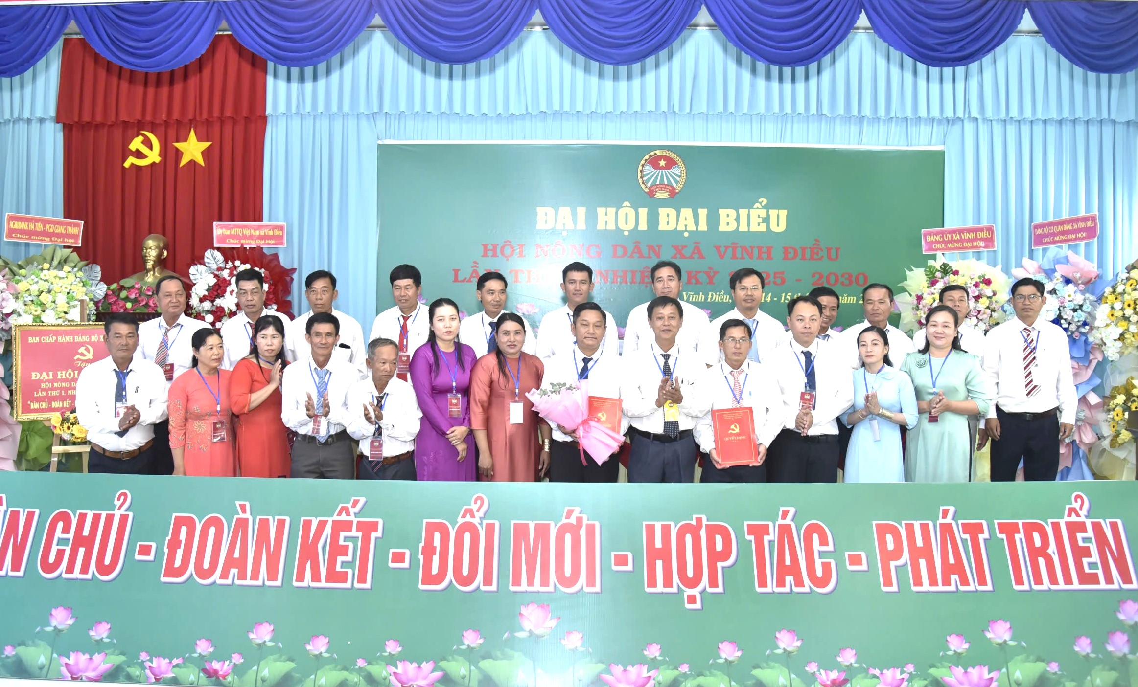Đại hội công bố quyết định của Ban Thường vụ Hội Nông dân tỉnh An Giang chỉ định 25 đồng chí tham gia Ban Chấp hành Hội Nông dân xã Vĩnh Điều khóa I, nhiệm kỳ 2025 - 2030; Ban Thường vụ gồm 7 đồng chí. Ông Trịnh Minh Thông được chỉ định giữ chức Chủ tịch Hội Nông dân xã Vĩnh Điều khóa I, nhiệm kỳ 2025 - 2030.