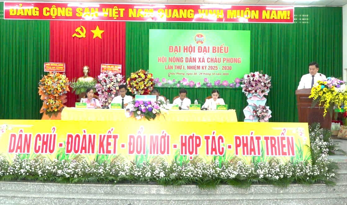 Trong không khí phấn khởi của những ngày cả nước thi đua lập thành tích chào mừng Đại hội Đảng các cấp, hướng tới Đại hội đại biểu toàn quốc Hội Nông dân Việt Nam lần thứ IX; ngày 28 - 29 tháng 10 năm 2025, tại Hội trường Đảng ủy xã Châu Phong, Đại hội đại biểu Hội Nông dân xã Châu Phong lần thứ I, nhiệm kỳ 2025–2030 đã diễn ra trang trọng, dân chủ, đoàn kết và thành công tốt đẹp.