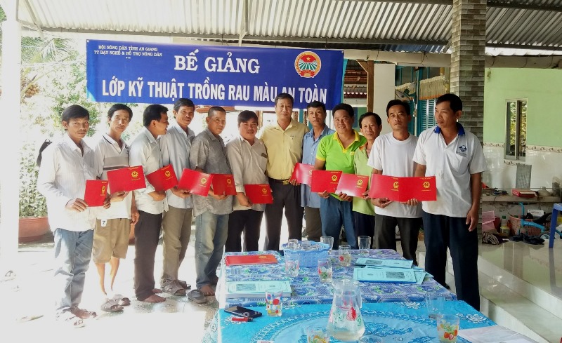 Bế giảng lớp kỹ thuật trồng rau an toàn (27/08/2018 14:50)Vừa qua, Trung tâm Dạy nghề và Hỗ trợ Nông dân phối hợp với Phòng Kinh tế Thành phố Long Xuyên bế giảng lớp kỹ thuật trồng rau an toàn tại xã Mỹ Hòa Hưng - Thành phố Long Xuyên.