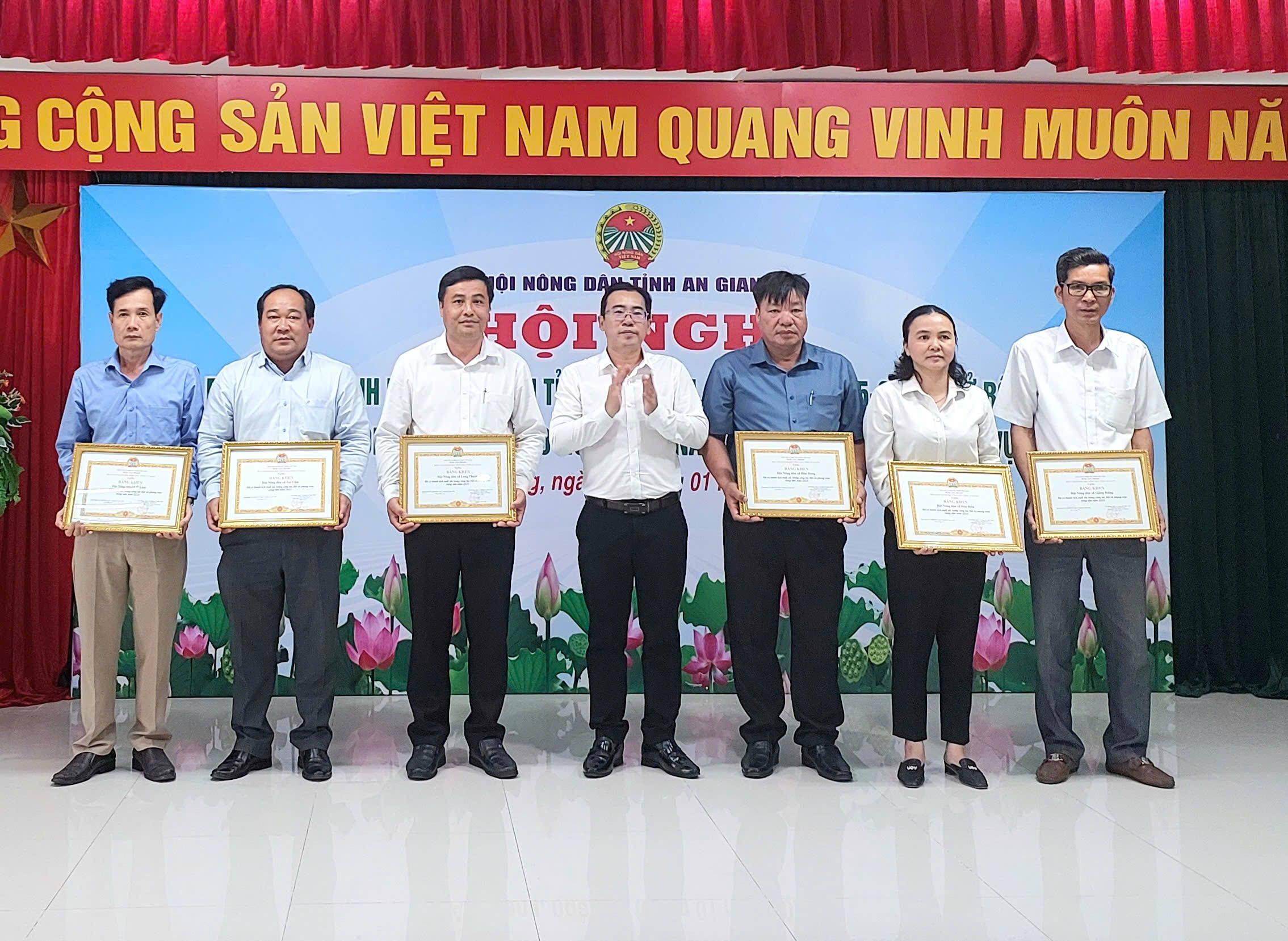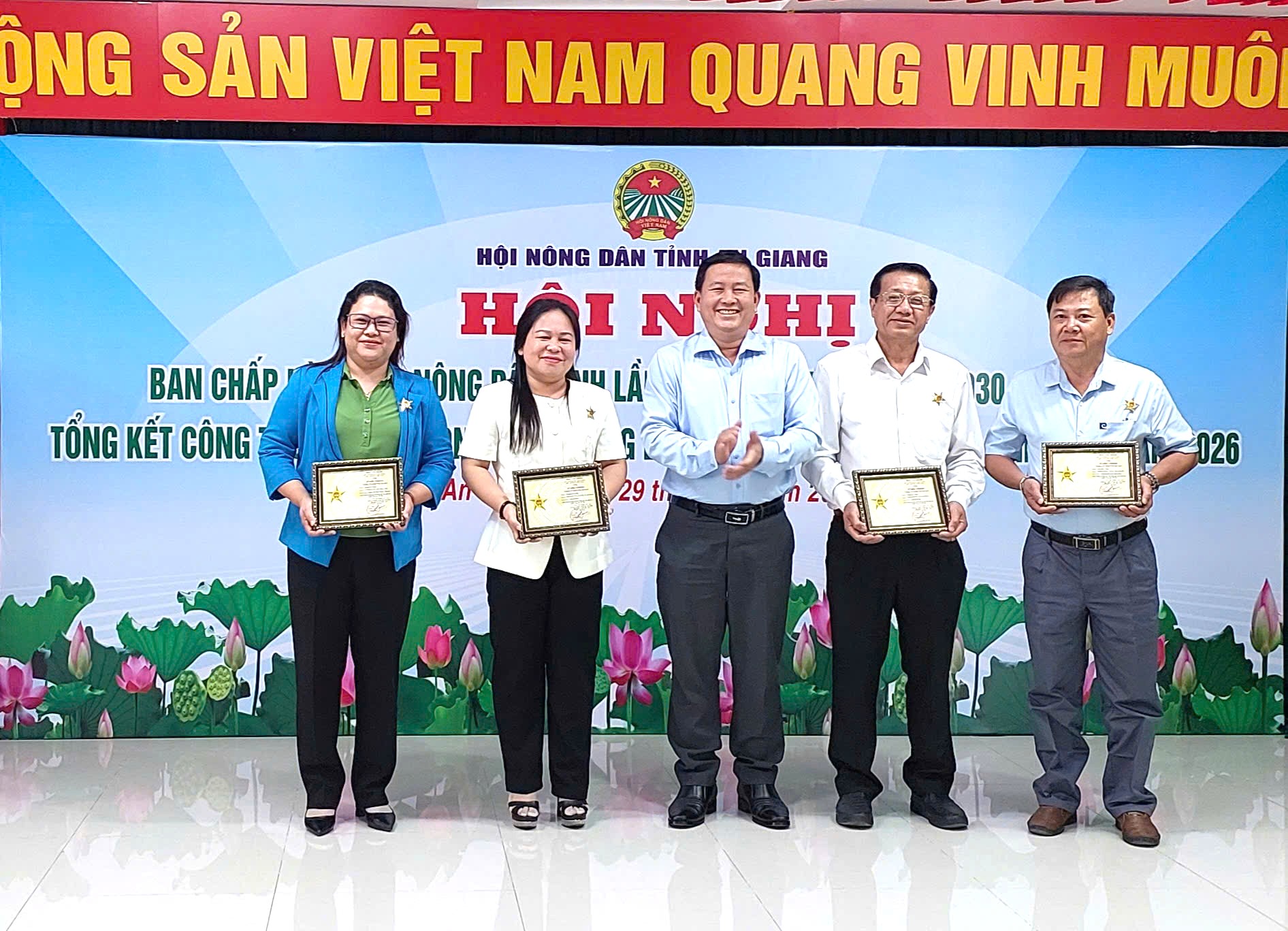 Dịp này, 19 tập thể được Ban Chấp hành Hội Nông dân tỉnh An Giang tặng bằng khen hoàn thành xuất sắc nhiệm vụ năm 2025, 4 cá nhân được trao Kỷ niệm chương “Vì giai cấp nông dân Việt Nam”.