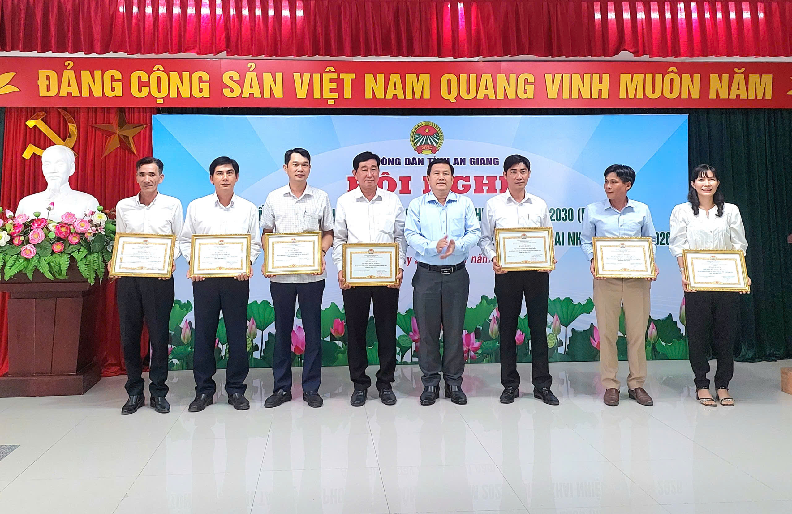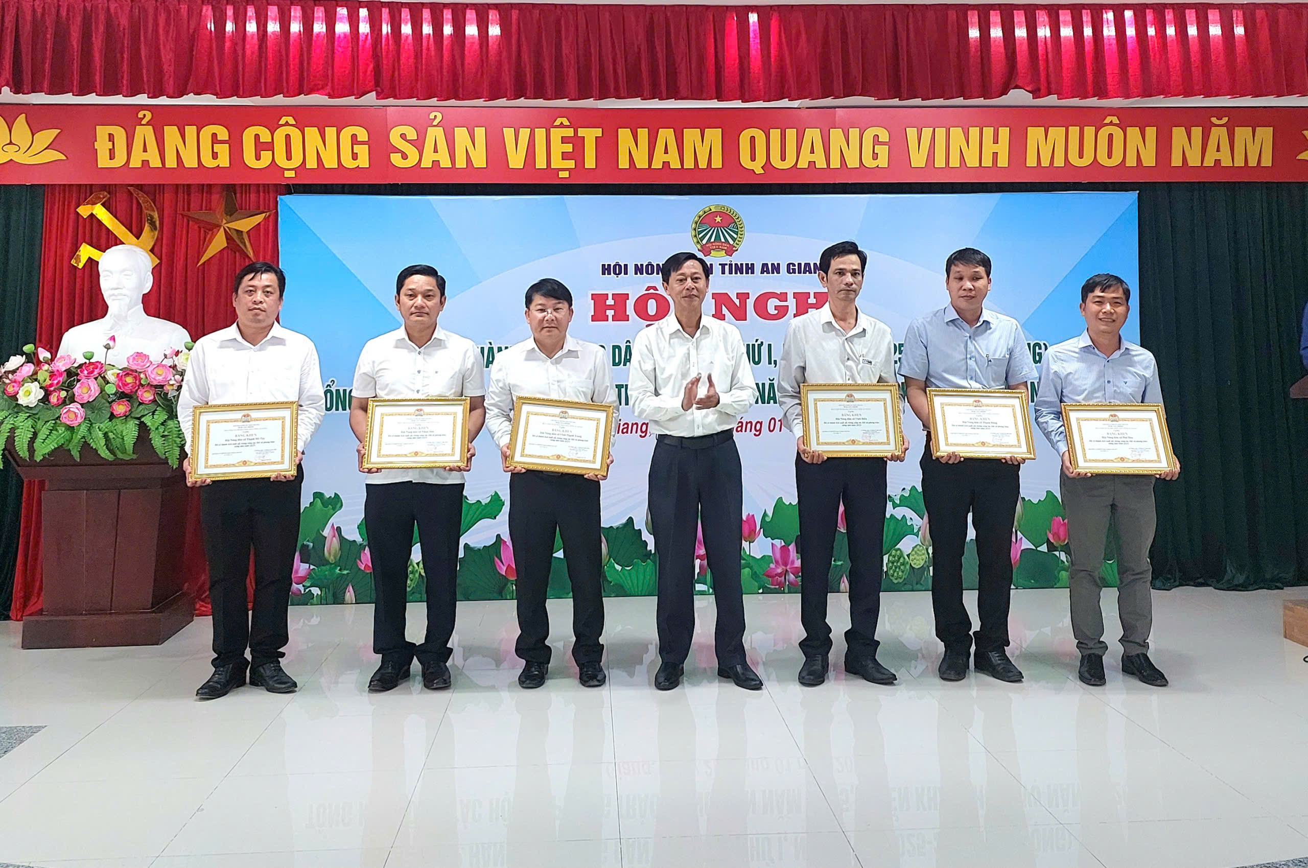 Chủ tịch Hội Nông dân tỉnh An Giang Nguyễn Văn Cọp trao bằng khen cho các tập thể hoàn thành xuất sắc nhiệm vụ năm 2025.