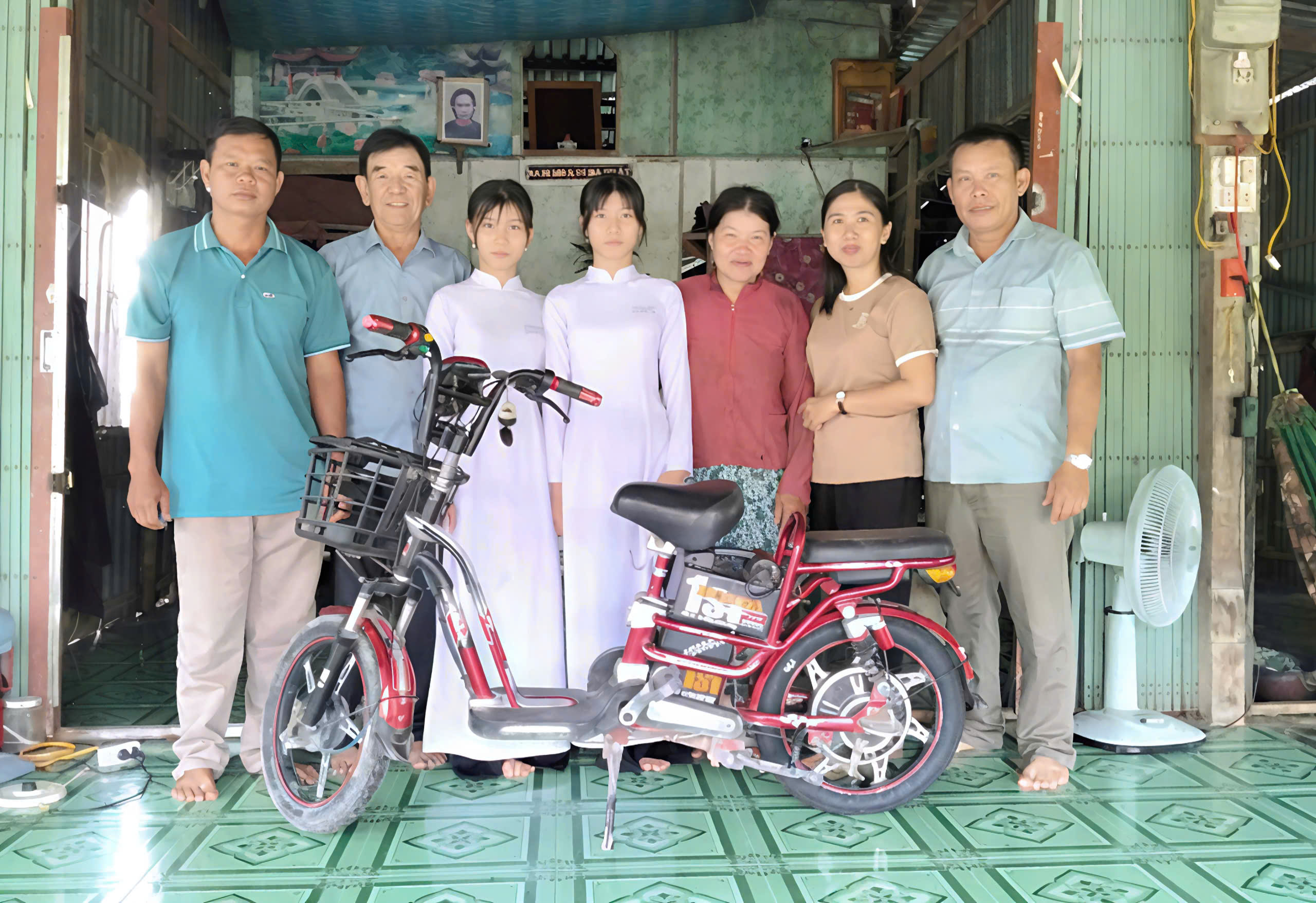 Thấu hiểu khó khăn đó, Hội Nông dân xã đã vận động mạnh thường quân hỗ trợ 3 triệu đồng để sửa chữa lại chiếc xe đạp điện cũ, bảo đảm an toàn cho các em sử dụng; đồng thời trao tặng thêm 20 quyển tập. Chủ tịch Hội Nông dân xã Vĩnh Gia Đặng Văn Dũng trực tiếp trao xe và quà tặng, gửi lời động viên hai em tiếp tục nỗ lực vươn lên trong học tập.