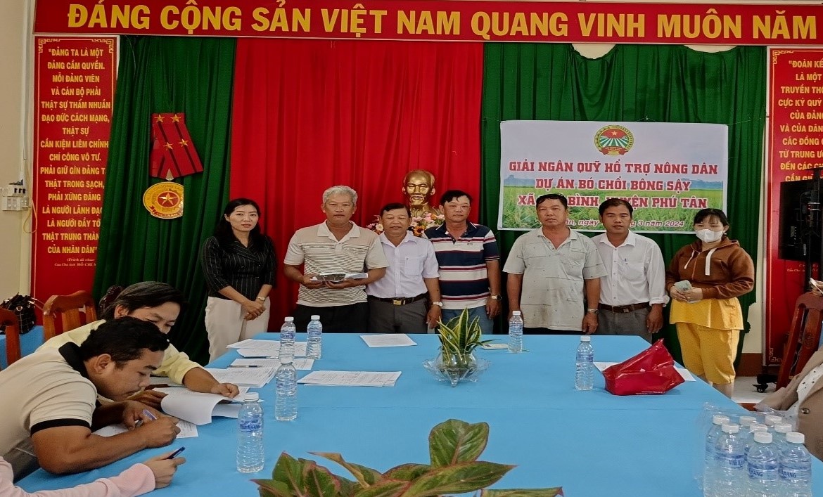 Quỹ Hỗ trợ nông dân tỉnh giải ngân phát triển nghề truyền thống Bó chổi bông sậy (14/03/2024 09:11) Quỹ Hỗ trợ nông dân tỉnh giải ngân phát triển nghề truyền thống Bó chổi bông sậy (14/03/2024 09:11)Sáng ngày 13/3/2024, Ban Điều hành Quỹ Hỗ trợ nông dân tỉnh An Giang vừa kết hợp với Hội Nông dân huyện Phú Tân tổ chức giải ngân Dự án “Bó chổi bông sậy”