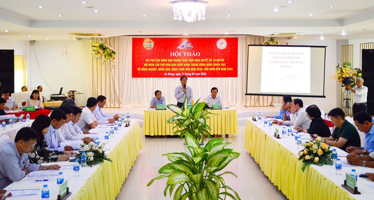 Nâng cao vai trò nông dân trong phát triển “nông nghiệp, nông dân, nông thôn” (20/02/2023 09:01) Nâng cao vai trò nông dân trong phát triển “nông nghiệp, nông dân, nông thôn” (20/02/2023 09:01)Ngày 17/2, Hội Nông dân tỉnh An Giang tổ chức Hội thảo về “Vai trò của nông dân trong thực hiện Nghị Quyết 19-NQ/TW, Hội nghị lần thứ năm Ban Chấp hành Trung ương Đảng (khóa XIII) về nông nghiệp, nông dân, nông thôn đến năm 2030, tầm nhìn đến năm 2045.