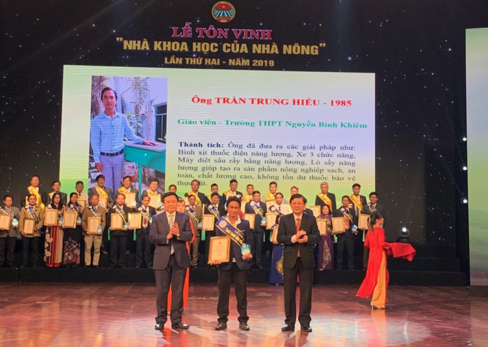 Trần Trung Hiếu được tôn vinh “Nhà Khoa học của Nhà nông” lần thứ hai - Năm 2019 (30/12/2019 09:54) Trần Trung Hiếu được tôn vinh “Nhà Khoa học của Nhà nông” lần thứ hai - Năm 2019 (30/12/2019 09:54)Trung ương Hội NDVN chủ trì phối hợp với Bộ NN&PTNT, Bộ Khoa học và Công nghệ, Liên Hiệp các Hội Khoa học và Kỹ thuật Việt Nam tổ chức Chương trình tôn vinh “Nhà Khoa học của Nhà nông” lần thứ hai, năm 2019.