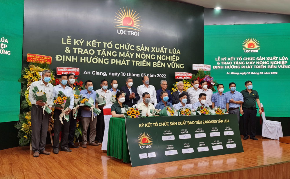 Ký kết chương trình phối hợp sản xuất lúa và trao tặng máy nông nghiệp (10/03/2022 14:17) Ký kết chương trình phối hợp sản xuất lúa và trao tặng máy nông nghiệp (10/03/2022 14:17)Ngày 10/03, tại Viện nghiên cứu Nông nghiệp, Tập đoàn Lộc Trời tổ chức lễ ký kết tổ chức sản xuất lúa và trao tặng máy nông nghiệp định hướng phát triển bền vững.