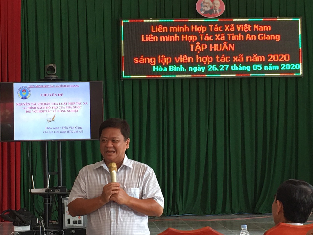 Tập huấn sáng lập viên Hợp tác xã (28/05/2020 16:00) Tập huấn sáng lập viên Hợp tác xã (28/05/2020 16:00)Nhằm nâng cao năng lực quản lý, điều hành Ban quản trị hợp tác xã, Hội Nông dân huyện Chợ Mới phối hợp với Liên minh Hợp tác xã tỉnh An Giang, tổ chức lớp tập huấn cho sáng lập viên hợp tác xã năm 2020.