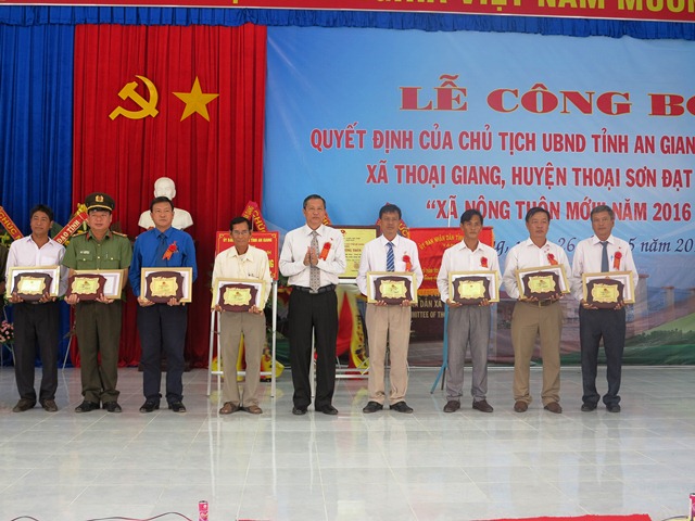 Lễ công nhận xã Thoại Giang đạt chuẩn xã nông thôn mới (12/12/2017)Ngày 26-5-2017, UBND xã Thoại Giang long trọng tổ chức Lễ công nhận danh hiệu xã đạt chuẩn nông thôn mới. Tham dự có ông Ông Lê Văn Nưng - Phó Chủ tịch UBND tỉnh, lãnh đạo các Sở, ban, ngành, đoàn thể cấp tỉnh cùng lãnh đạo huyện... Lễ công nhận xã Thoại Giang đạt chuẩn xã nông thôn mới (12/12/2017)Ngày 26-5-2017, UBND xã Thoại Giang long trọng tổ chức Lễ công nhận danh hiệu xã đạt chuẩn nông thôn mới. Tham dự có ông Ông Lê Văn Nưng - Phó Chủ tịch UBND tỉnh, lãnh đạo các Sở, ban, ngành, đoàn thể cấp tỉnh cùng lãnh đạo huyện...