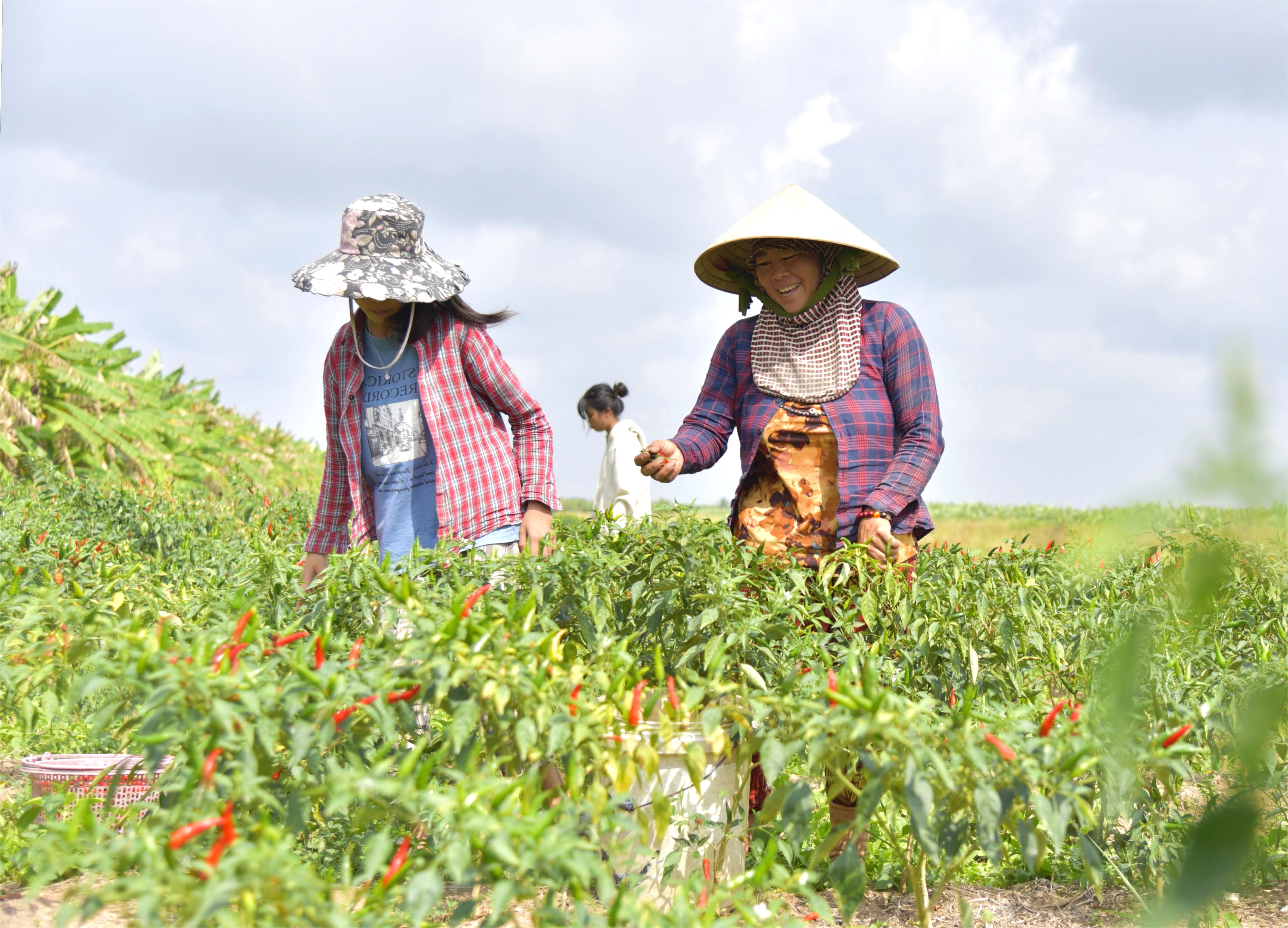 Nhân công thu hoạch ớt cho gia đình ông Võ Văn Nhàn.