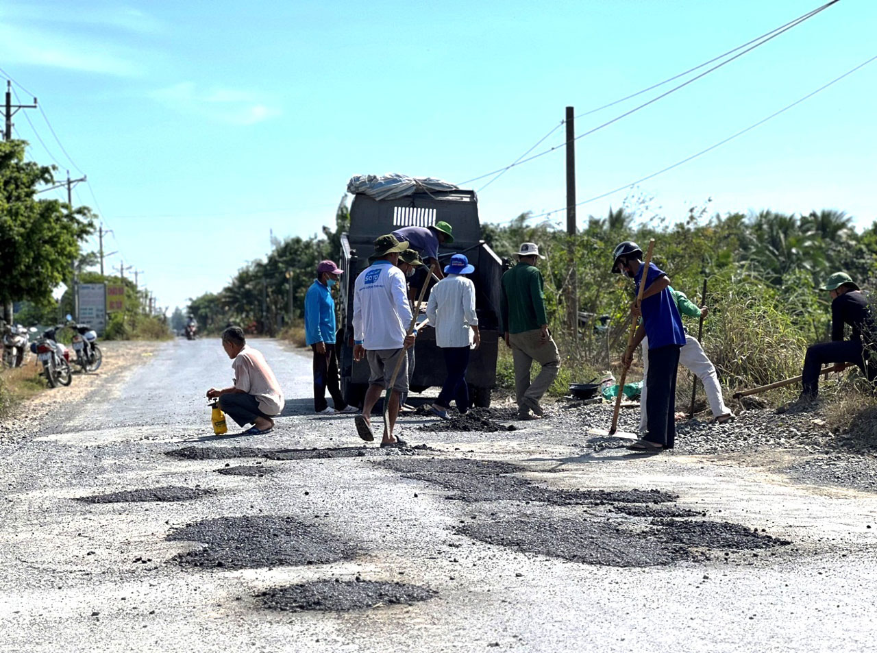 Hội Nông dân xã Lương Phi tổ chức thực hiện vá các ổ gà, ổ voi trên tuyến đường Tỉnh lộ 955B. (15/12/2022 09:26)Ngày 13/12, Hội Nông dân xã Lương Phi vừa vận động kinh phí và thực hiện vá các đoạn đường long tróc, hư hỏng, đọng nước trên tuyến đường tỉnh lộ 955B, từ ấp Sà Lôn đến ấp An Thành thuộc xã Lương Phi, chiều dài khoảng 10km.