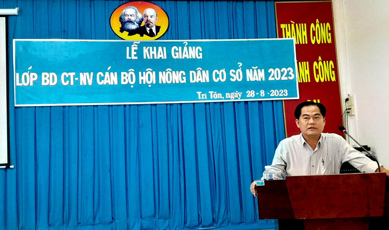 Tri Tôn: Tập huấn nghiệp vụ công tác Hội cho cán bộ Hội cơ sở, chi hội khóm - ấp (28/08/2023 10:29)Sáng ngày 28/8/2023, Tại Trung tâm Chính trị huyện, Hội Nông dân huyện Tri Tôn phối hợp Trung tâm Chính trị huyện tổ chức lớp tập huấn, bồi dưỡng lý luận chính trị và nghiệp vụ công tác Hội năm 2023.
