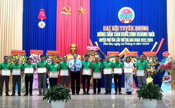 Phú Tân tổ chức Đại hội tuyên dương Nông dân Sản xuất - Kinh doanh giỏi lần thứ XIII, giai đoạn 2022 - 2024. (23/08/2024 13:12)Sáng ngày 23/08/2024, Hội Nông dân huyện Phú Tân long trọng tổ chức Đại hội tuyên dương nông dân sản xuất - kinh doanh giỏi lần thứ XIII, giai đoạn 2022 -2024.