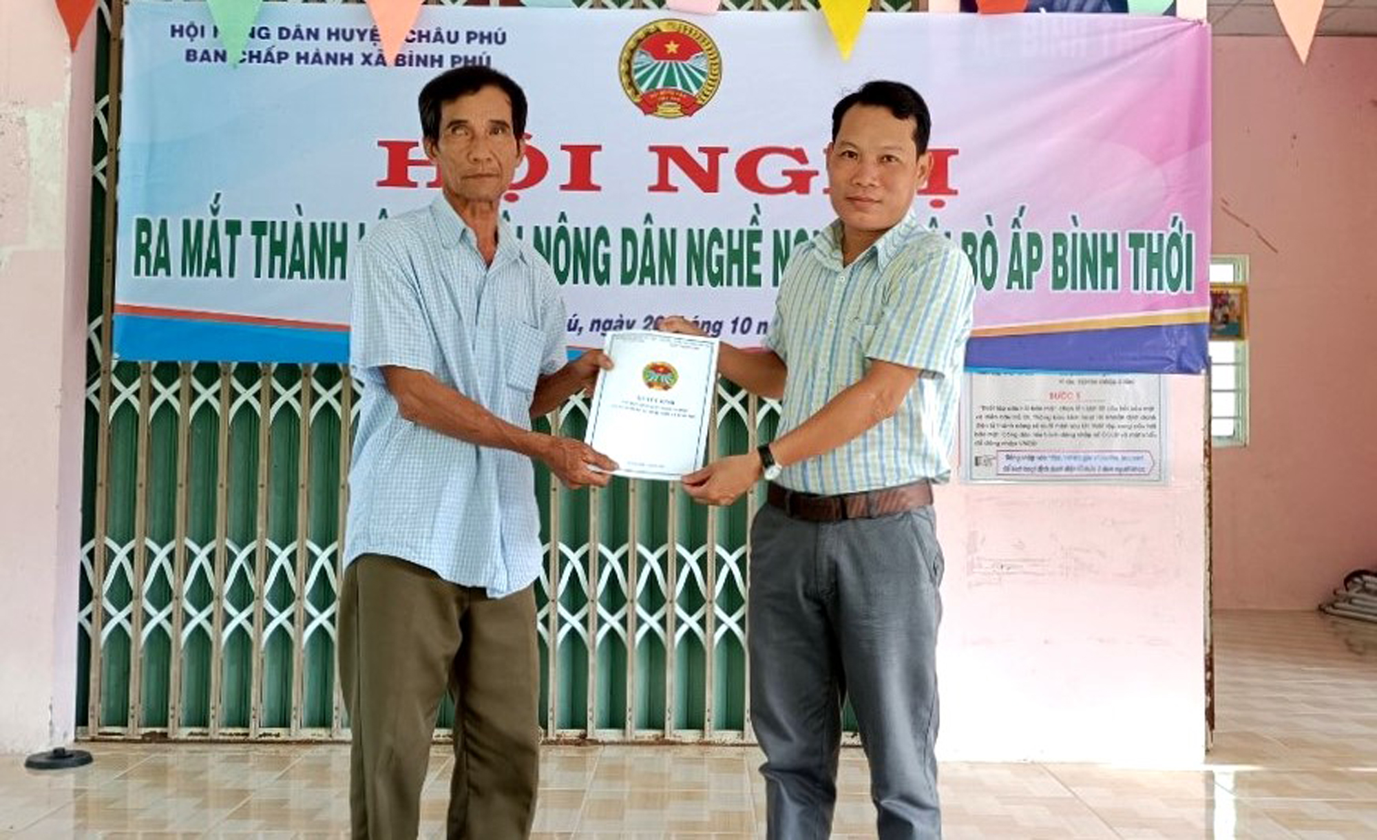 Ra mắt Chi hội nông dân nghề nghiệp chăn nuôi bò, ấp Bình Thới, xã Bình Phú. (31/10/2023 10:09)Ngày 20/10/2023, Hội Nông dân xã Bình Phú tổ chức lễ ra mắt thành lập Chi hội nông dân nghề nghiệp chăn nuôi bò, ấp Bình Thới, xã Bình Phú. Đến dự có đồng chí Phan Văn Kha - Phó Chủ tịch hội Nông dân huyện Châu Phú.