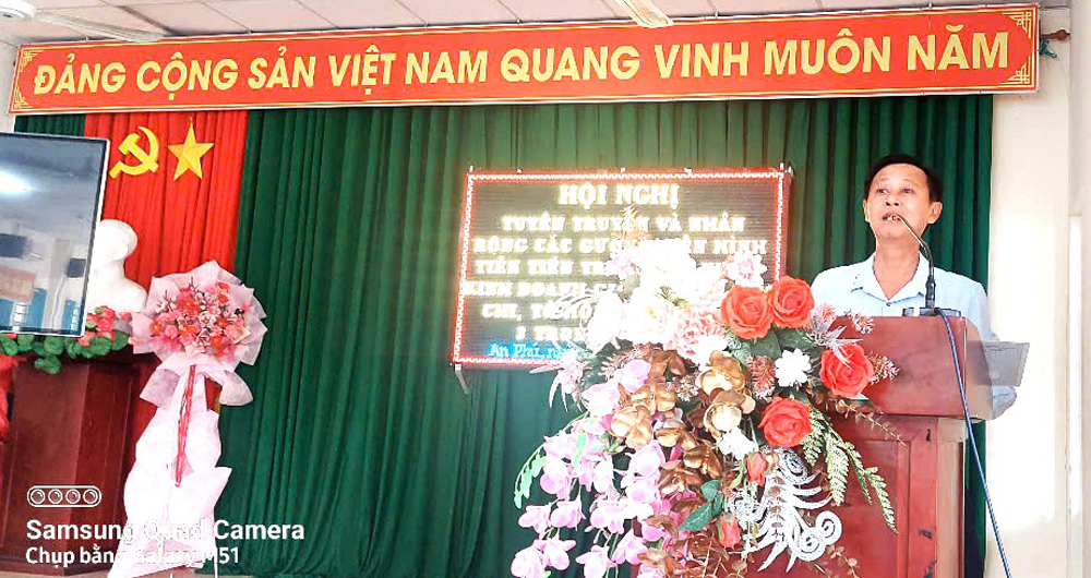 An Phú: Sáng tạo trong tổ chức Đại hội Tuyên dương Nông dân Sản xuất - kinh doanh giỏi, giai đoạn 2022-2024. (19/06/2024 10:21)Sáng ngày 18/6, Hội Nông dân huyện An Phú đã chỉ đạo và tổ chức thành công Đại hội Tuyên dương nông dân sản xuất, kinh doanh giỏi giai đoạn 2022-2024 tại cụm 2 gồm 05 đơn vị gồm các xã Phước Hưng, Quốc Thái, Nhơn Hội, Thị trấn An Phú, thị trấn Đa Phước.
