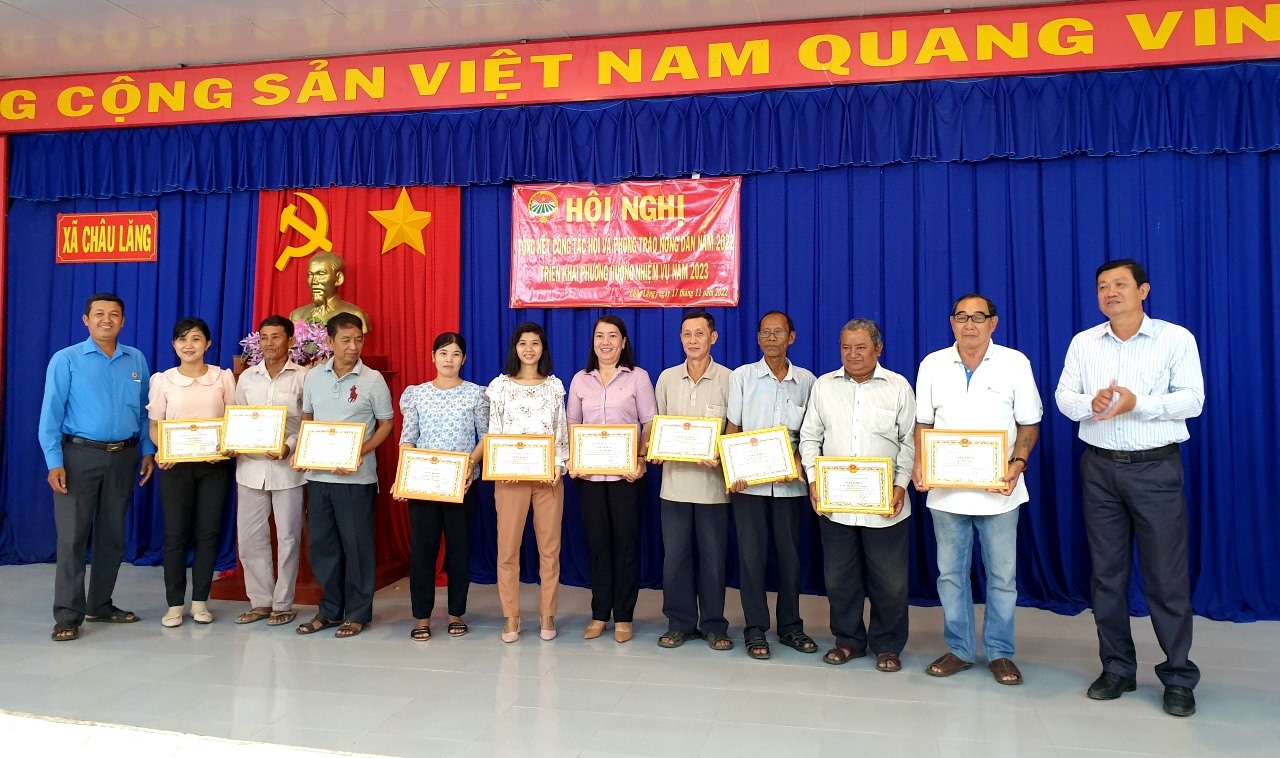 Châu Lăng: Tổng kết công tác Hội và phong trào nông dân năm 2019 (09/12/2019 10:27)Ngày 06/12, Hội Nông dân xã Châu Lăng - Tri Tôn tổ chức Hội nghị Tổng kết công tác Hội và Phong trào Nông dân năm 2019 và Bầu Uỷ ban kiểm tra Hội nông dân xã Châu Lăng, nhiệm kỳ 2018 - 2023.