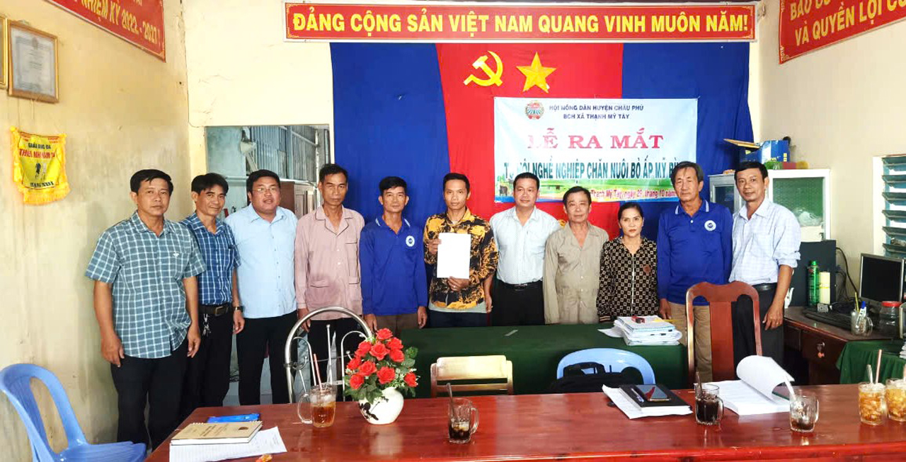 Thành lập Tổ hội nông dân nghề nghiệp chăn nuôi bò (01/11/2024 08:55) Thành lập Tổ hội nông dân nghề nghiệp chăn nuôi bò (01/11/2024 08:55)Trước đó, ngày 29/10/2024, Hội Nông dân xã Thạnh Mỹ Tây, huyện Châu Phú tổ chức lễ ra mắt Tổ hội nghề nghiệp chăn nuôi bò ấp Mỹ Bình.