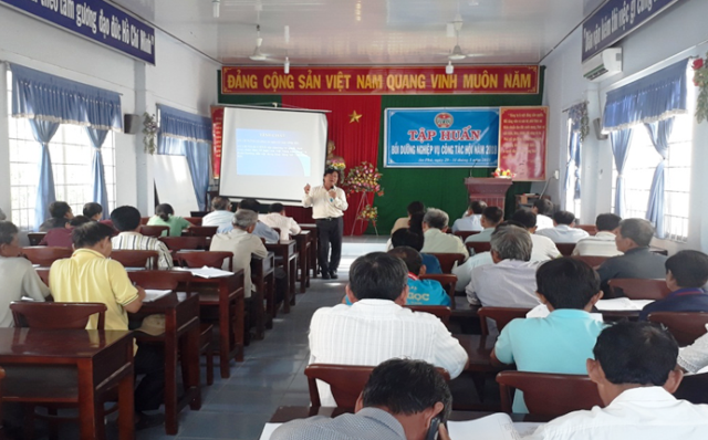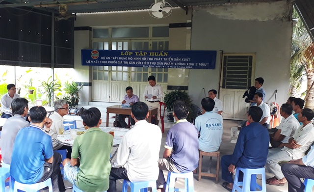 Tập huấn xây dựng mô hình hỗ trợ phát triển sản xuất liên kết. (15/11/2018 14:34) Tập huấn xây dựng mô hình hỗ trợ phát triển sản xuất liên kết. (15/11/2018 14:34)Ngày 14/11, tại xã Vọng Đông, Hội Nông dân tỉnh An Giang phối hợp cùng Hội Nông dân huyện Thoại Sơn tổ chức lớp tập huấn xây dựng mô hình hỗ trợ phát triển sản xuất liên kết theo chuỗi giá trị gắn với tiêu thụ sản phẩm đối với cây xoài 3 màu, cho hơn 20 hội viên nông dân tham dự .