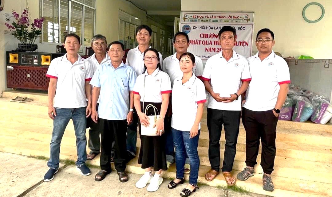 Chi hội Hoa Lan Châu Đốc thực hiện công tác thiện nguyện (31/10/2024 15:04) Chi hội Hoa Lan Châu Đốc thực hiện công tác thiện nguyện (31/10/2024 15:04)Chi hội Nông dân nghề nghiệp Hoa lan Thành phố Châu Đốc được thành lập vào ngày 04/02/2024 với 16 thành viên, là những hộ cơ sở ươm nuôi các giống Hoa Lan mới được thị trường hoa kiểng ưa chọn.