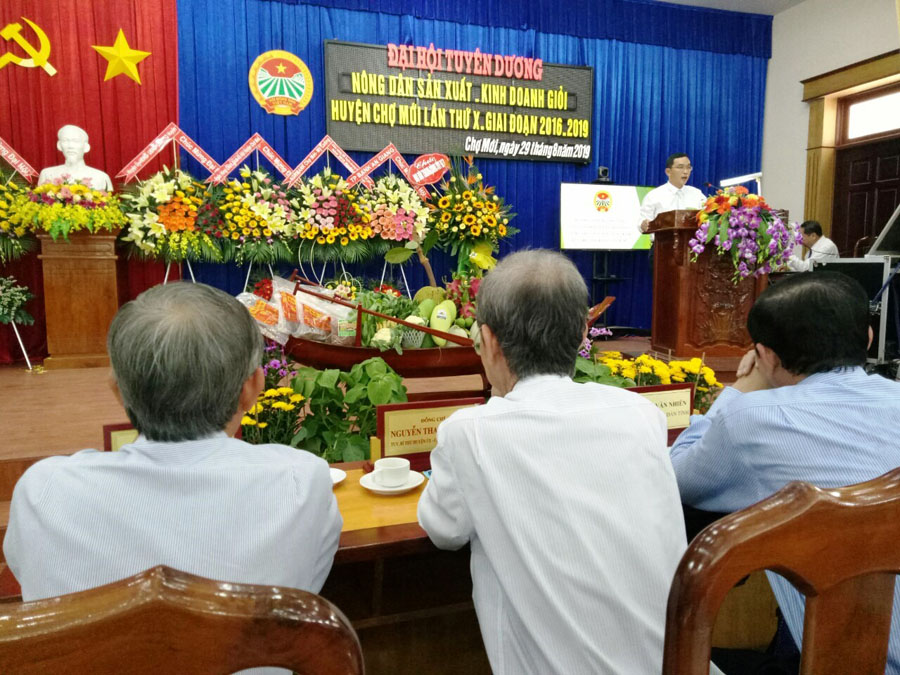 Chợ Mới và Tri Tôn: Tuyên dương nông dân sản xuất - kinh doanh giỏi giai đoạn 2016- 2019 (29/08/2019 08:59) Chợ Mới và Tri Tôn: Tuyên dương nông dân sản xuất - kinh doanh giỏi giai đoạn 2016- 2019 (29/08/2019 08:59)Ngày 29/8, Tại hội trường Huyện ủy Chợ Mới, Hội Nông dân huyện Chợ Mới tổ chức Đại hội tuyên dương nông dân sản xuất - kinh doanh giỏi huyện Chợ Mới lần thứ X, giai đoạn 2016 - 2019.