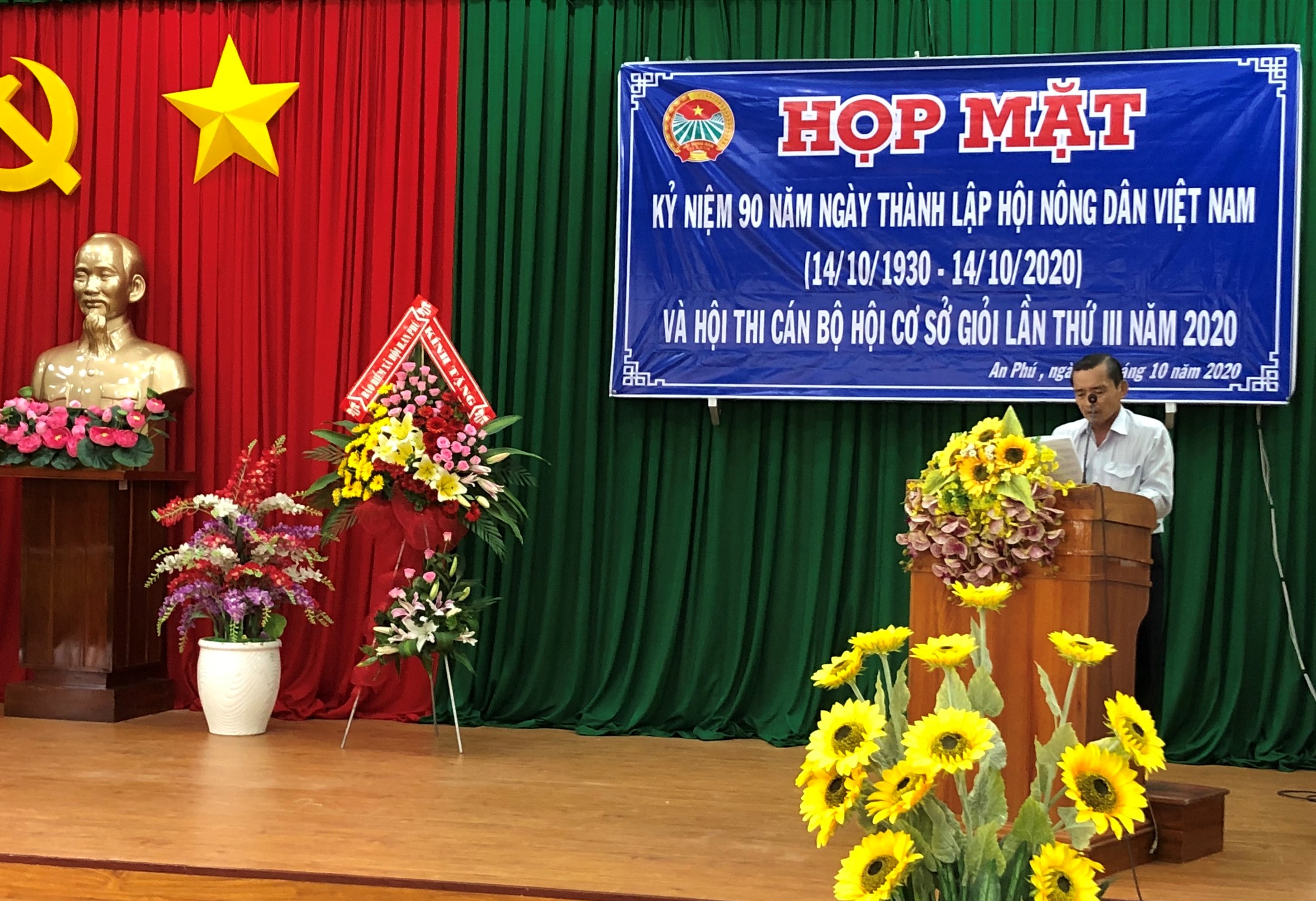 Xã Khánh An: Đạt giải nhất hội thi cán bộ Hội cơ sở giỏi lần thứ II năm 2018 (18/10/2018 17:47) Xã Khánh An: Đạt giải nhất hội thi cán bộ Hội cơ sở giỏi lần thứ II năm 2018 (18/10/2018 17:47)Sáng ngày 17/10/2018, Hội Nông dân huyện An Phú tổ chức họp mặt kỷ niệm 88 năm ngày thành lập Hội Nông dân Việt Nam (14/10/1930 – 14/10/2018) và Hội thi cán bộ Hội cơ sở giỏi lần thứ II năm 2018.
