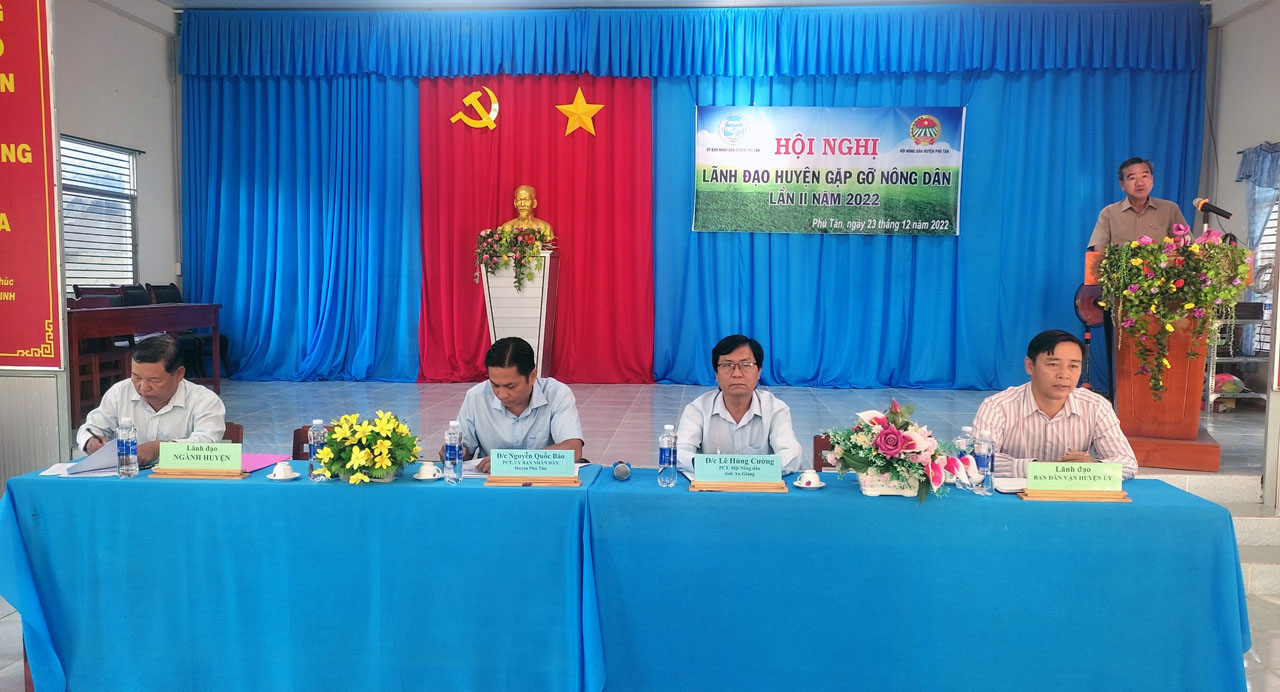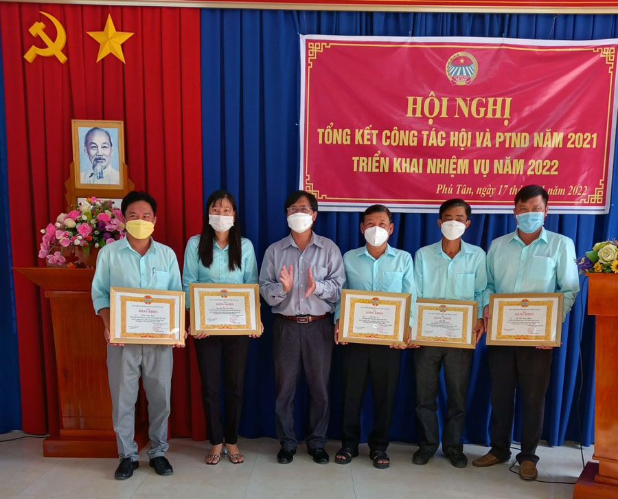 Phú Tân: Tổ chức Hội nghị tổng kết công tác Hội và phong trào nông dân năm 2018 (08/01/2019 15:29)Ngày 07/01/2019, Hội Nông dân huyện Phú Tân tổ chức Hội nghị tổng kết công tác Hội và phong trào nông dân năm 2018, đề ra phương hướng, nhiệm vụ trọng tâm năm 2019.