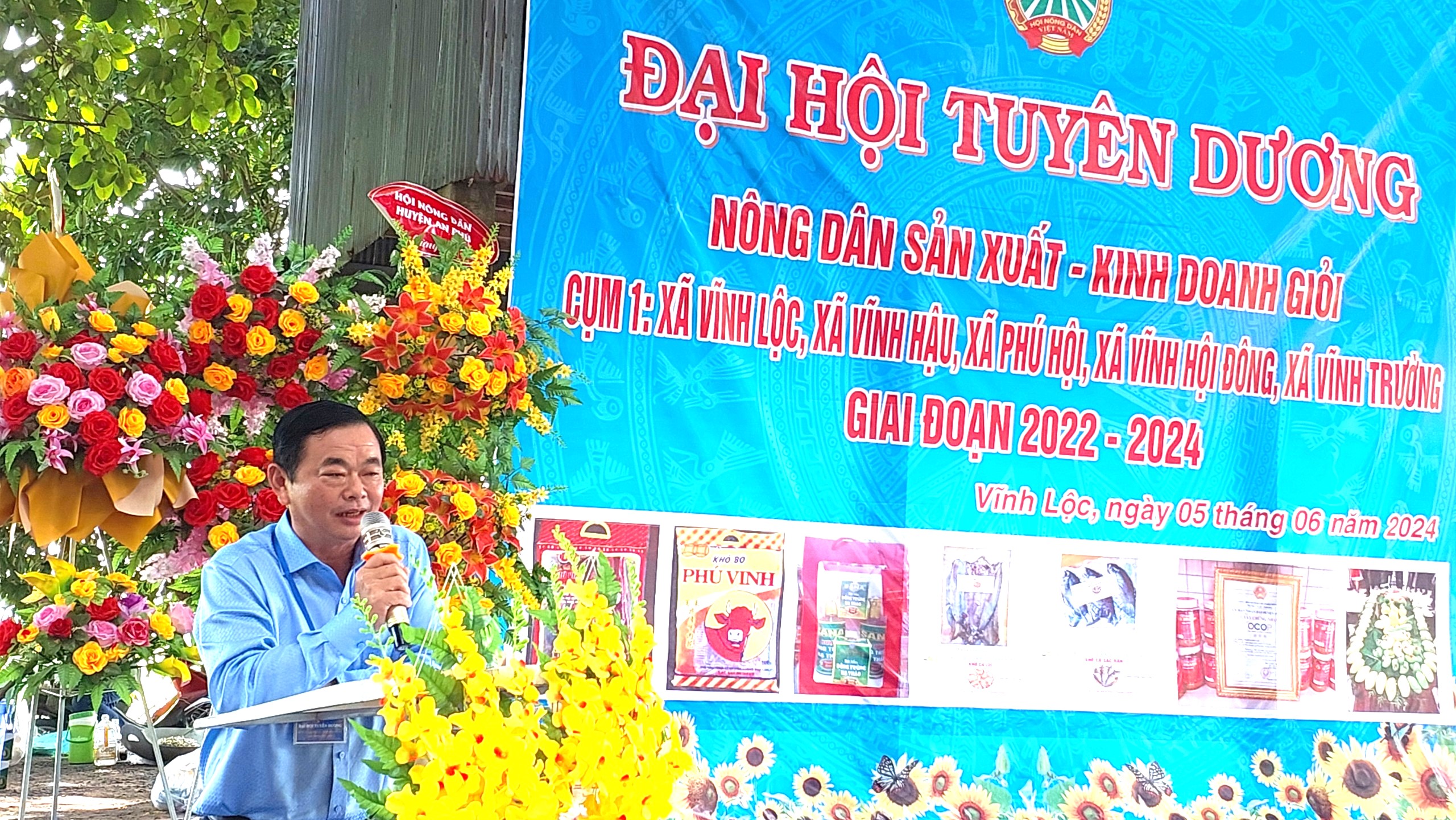 Đại hội tuyên dương Nông dân sản xuất - kinh doanh giỏi với mô hình mới lạ sáng tạo (06/06/2024 10:57) Đại hội tuyên dương Nông dân sản xuất - kinh doanh giỏi với mô hình mới lạ sáng tạo (06/06/2024 10:57)Sáng ngày 05/6/2024, tại xã Vĩnh Lộc, H. An Phú đã long trọng tổ chức Đại hội Tuyên dương Nông dân sản xuất kinh doanh giỏi giai đoạn 2022 - 2024, với hình thức tổ chức theo cụm 01 gồm các xã Vĩnh Lộc, xã Vĩnh Hậu, xã Phú Hội, xã Vĩnh Hội Đông, xã Vĩnh Trường.