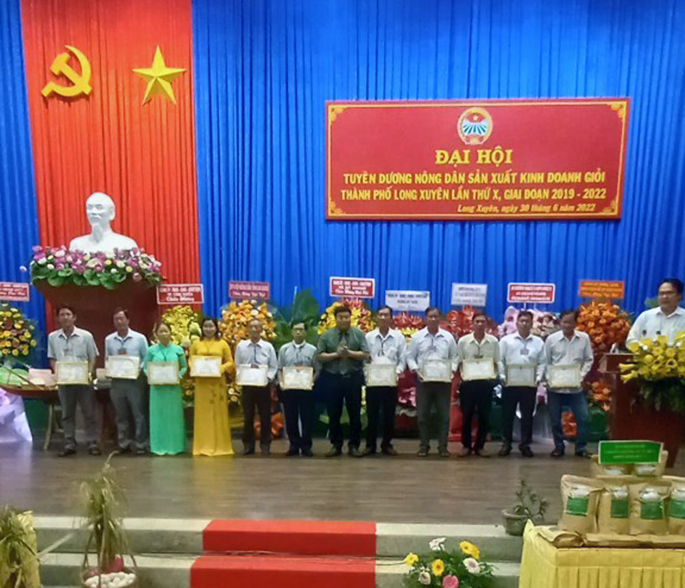 Thành phố Long Xuyên: Tuyên dương 150 nông dân sản xuất - kinh doanh giỏi. (06/09/2019 16:04)Chiều 06/09/2019, Hội Nông dân Thành phố Long xuyên tổ chức Đại hội tuyên dương nông dân sản xuất - kinh doanh giỏi Thành phố Long xuyên lần thứ IX, giai đoạn 2016 - 2019
