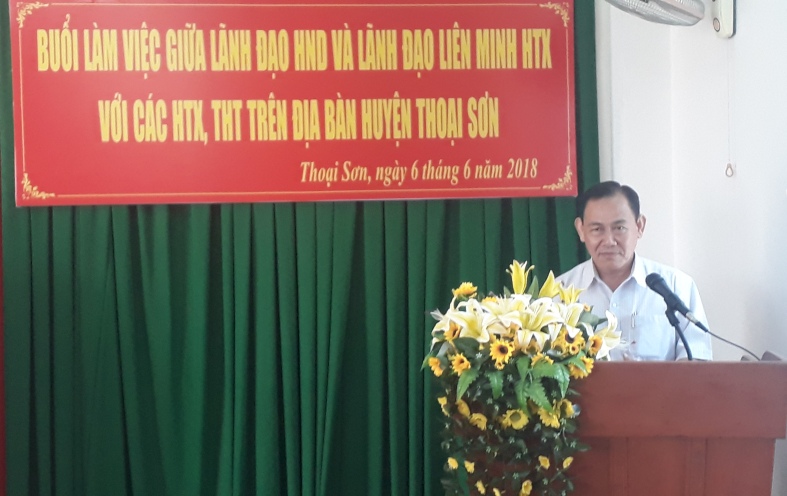 Lãnh đạo Hội Nông dân, Liên minh Hợp tác xã tỉnh có buổi làm việc với các Hợp tác xã và các tổ hợp tác trên địa bàn huyện Thoại Sơn (07/06/2018 15:39) Lãnh đạo Hội Nông dân, Liên minh Hợp tác xã tỉnh có buổi làm việc với các Hợp tác xã và các tổ hợp tác trên địa bàn huyện Thoại Sơn (07/06/2018 15:39)Sáng ngày 6/6/2018, Lãnh đạo Hội Nông dân, Liên minh Hợp tác xã tỉnh An Giang có buổi làm việc với các Hợp tác xã - tổ hợp tác trên địa bàn huyện Thoại Sơn.