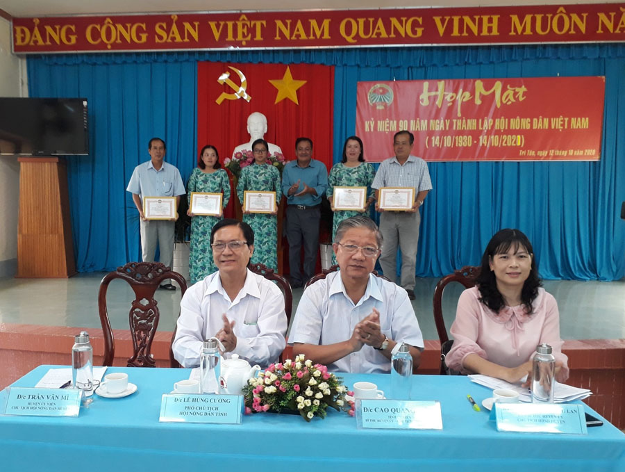 Năm 2019, Hội Nông dân Tri Tôn đạt và vượt các chỉ tiêu đề ra (24/12/2019 08:54) Năm 2019, Hội Nông dân Tri Tôn đạt và vượt các chỉ tiêu đề ra (24/12/2019 08:54)Để công tác Hội và phong trào nông dân Tri Tôn hoạt động mang lại hiệu quả cao, Hội Nông dân huyện luôn chú trong vào việc phát triển chất lượng và số lượng hội viên, xây dựng tổ chức Hội vững mạnh.