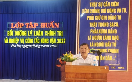 Bồi dưỡng lý luận chính trị và nghiệp vụ công tác Hội Nông dân năm 2024. (21/05/2024 09:06) Bồi dưỡng lý luận chính trị và nghiệp vụ công tác Hội Nông dân năm 2024. (21/05/2024 09:06)Sáng ngày 21/05/2024 Hội Nông dân Phú Tân Phối hợp với Trung tâm Chính trị huyệntổ chức tập huấn Bồi dưỡng lý luận chính trị và nghiệp vụ công tác Hội Nông dân năm 2024.
