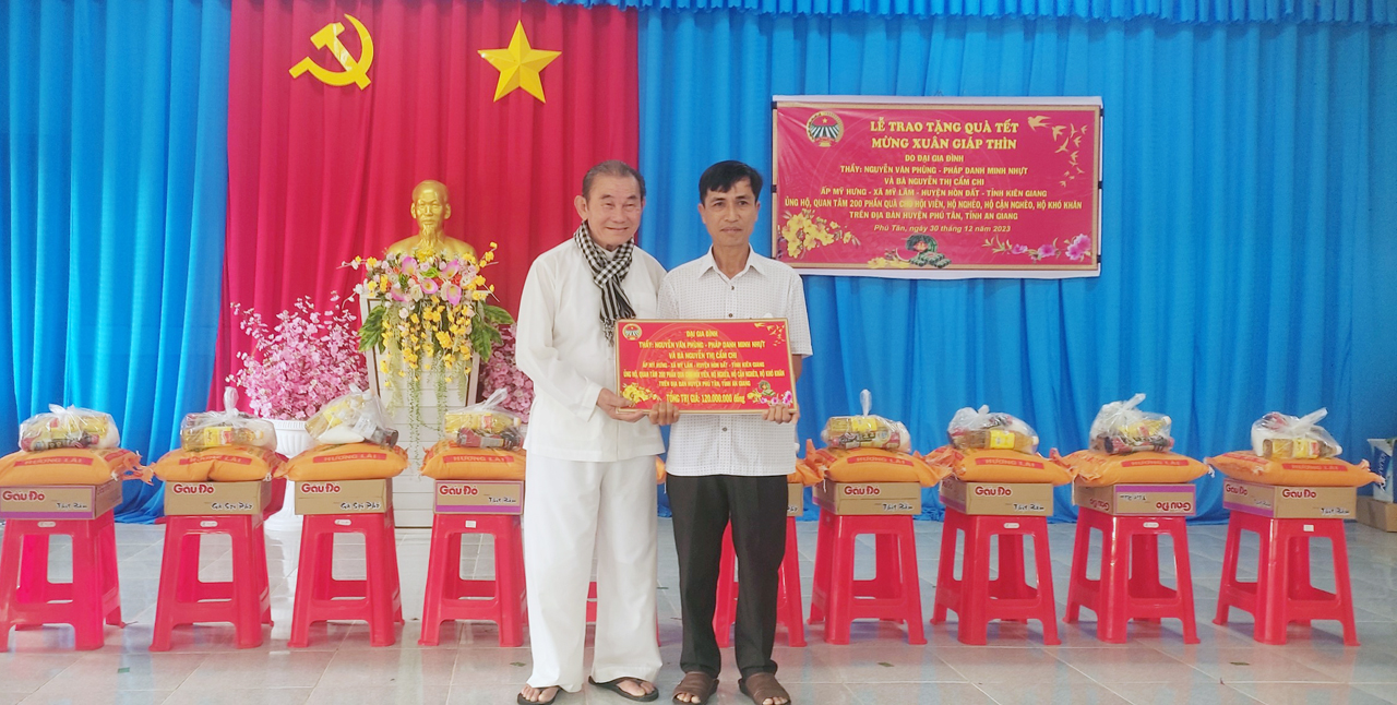 Trao quà Tết Giáp Thìn cho hội viên, nông dân có hoàn cảnh khó khăn. (31/01/2024 08:47) Trao quà Tết Giáp Thìn cho hội viên, nông dân có hoàn cảnh khó khăn. (31/01/2024 08:47)Sáng ngày 30/01, đồng chí Lương Quốc Đoàn - Ủy viên Trung ương Đảng, Bí thư Đảng đoàn, Chủ tịch Ban chấp hành Trung ương Hội Nông dân Việt Nam trao quà Tết Giáp Thìn 2024 cho hội viên, nông dân có hoàn cảnh khó khăn tại An Giang