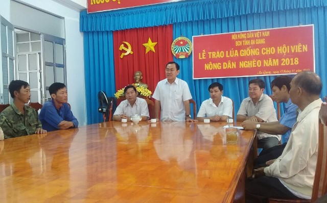 Hỗ trợ 8 tấn lúa giống cho hộ dân do ảnh hưỡng lũ (21/11/2018 10:12) Hỗ trợ 8 tấn lúa giống cho hộ dân do ảnh hưỡng lũ (21/11/2018 10:12)Sáng 17/11, tại xã Vĩnh Phước - huyện Tri Tôn. Ban Thường vụ Hội Nông dân tỉnh đã trao lúa giống hỗ trợ nông dân một số địa phương bị thiên tai.
