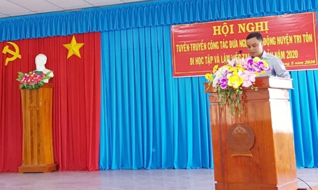 Tri Tôn: Tổng kết công tác Hội và phong trào nông dân năm 2018. (04/01/2019 18:03)Ngày 04/01/2019, Hội Nông dân huyện Tri Tôn tổ chức Hội nghị BCH Hội Nông dân huyện lần 3, khóa XI, nhiệm kỳ 2018-2023, Tổng kết công tác Hội và phong trào Nông dân năm 2018, triển khai công tác Hội và phát động thi đua năm 2019.
