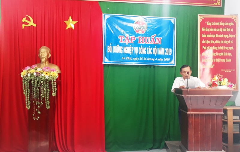 Tập huấn nghiệp vụ công tác Hội năm 2019 (25/04/2019 09:16) Tập huấn nghiệp vụ công tác Hội năm 2019 (25/04/2019 09:16)Sáng ngày 25 tháng 4 năm 2019 Hội Nông dân huyện An Phú tổ chức mở lớp tập huấn bồi dưỡng nghiệp vụ công tác Hội năm 2019.