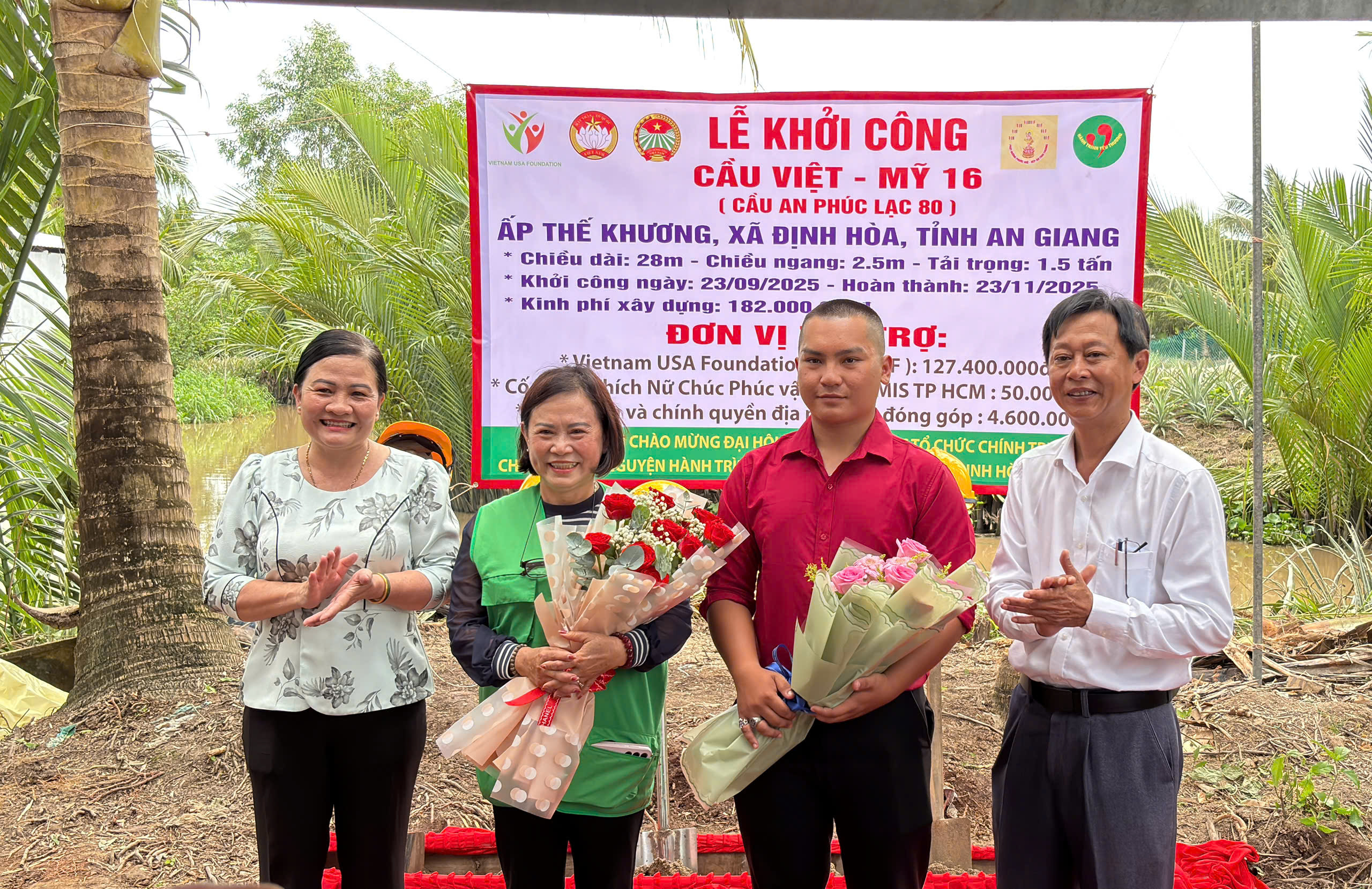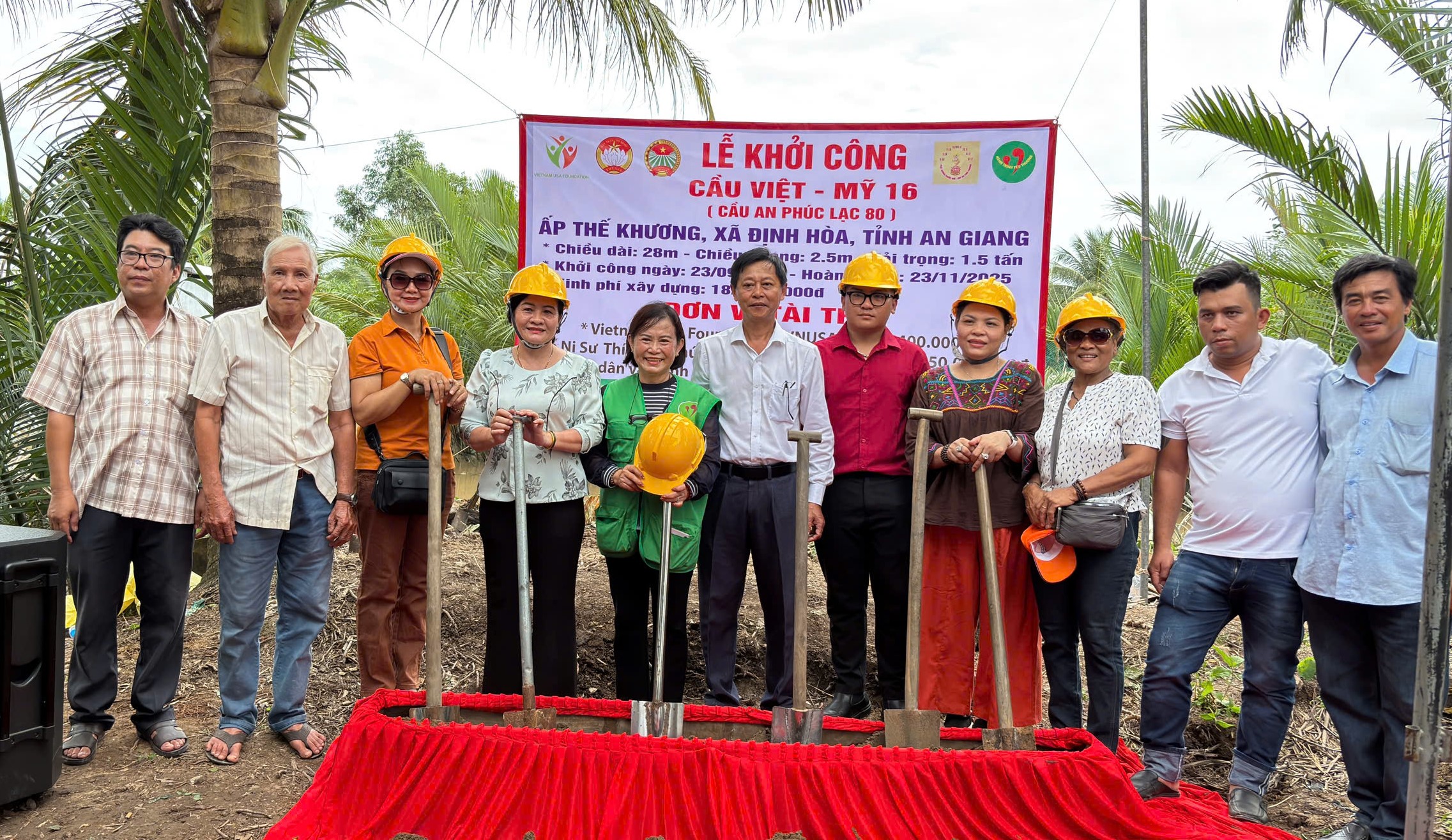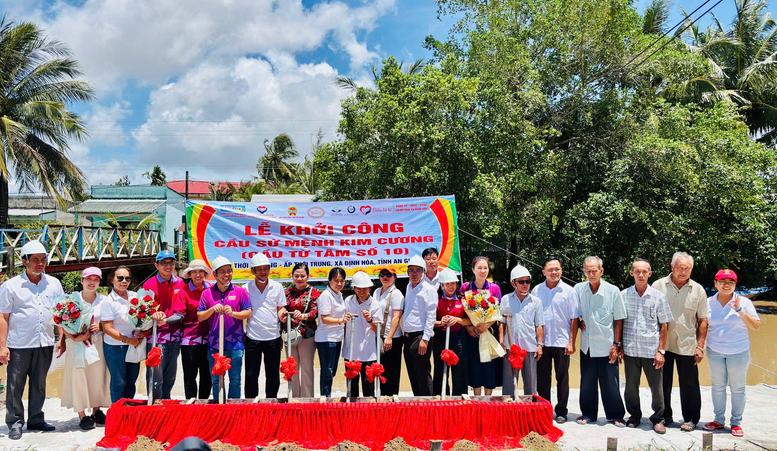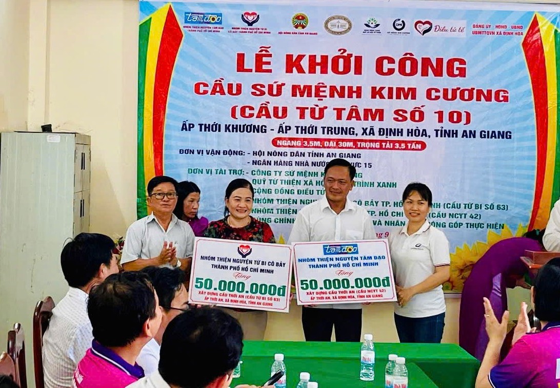 Từ ngày 21 – 23/9/2025 Hội Nông dân tỉnh phối hợp với các đơn vị tài trợ, Đảng ủy, UBND, UBMTTQ, Hội Nông dân xã tổ chức buổi lễ khởi công xây dựng cầu Sứ mệnh Kim Cương (Cầu từ tâm số 10), Cầu Việt – Mỹ 16 (Cầu An Phúc Lạc 80) xã Định Hòa tỉnh An Giang.