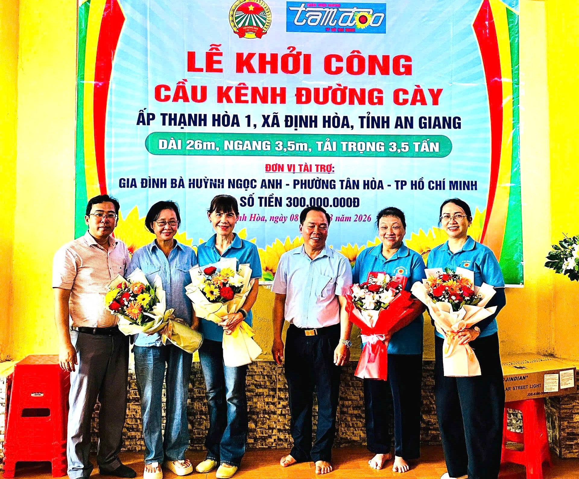 Chiều 08/3/2026, Hội Nông dân tỉnh An Giang phối hợp Đảng ủy, UBND, Ủy ban MTTQ Việt Nam xã Định Hòa tổ chức lễ khởi công xây dựng cầu Kênh Đường Cày, ấp Thạnh Hòa 1, xã Định Hòa.
