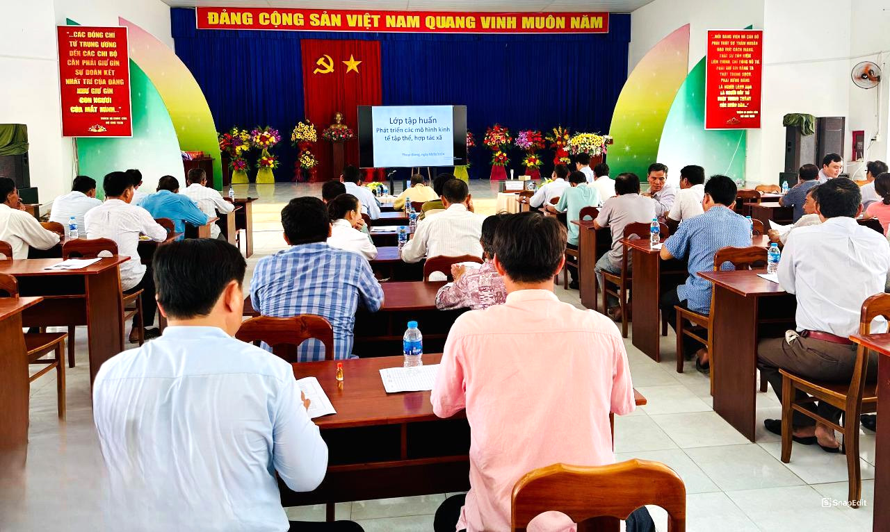 Tập huấn phát triển các mô hình kinh tế tập thể, hợp tác xã. (09/08/2024 14:42)Chiều ngày 09/8/2024, tại xã Thoại Giang. Hội Nông dân tỉnh tổ chức lớp tập huấn phát triển các mô hình kinh tế hợp tác tại xã Thoại Giang huyện Thoại Sơn.
