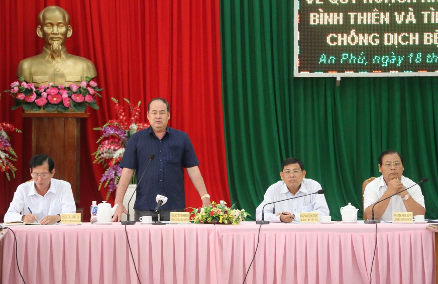 An Giang siết chặt kiểm soát biên giới để phòng chống dịch Covid-19 (20/02/2020 10:19)Trước diễn biến phức tạp của dịch bệnh viêm đường hô hấp cấp do chủng mới của virus corona (Covid-2019), ngày 18/2, đoàn công tác của tỉnh do Chủ tịch UBND tỉnh Nguyễn Thanh Bình làm trưởng đoàn đã đi kiểm tra thực tế tình hình phòng, chống dịch bệnh Covid-19 tại khu vực biên giới huyện An Phú, tỉnh An Giang.