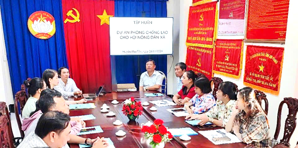 Tập huấn công tác phòng chống lao năm 2024. (27/11/2024 10:44)Sáng ngày 26/11, Hội Nông dân huyện Phú Tân phối hợp Tổ chống lao tỉnh - trực thuộc Hội Nông dân tỉnh An Giang, tổ chức tập huấn công tác phòng chống lao. Đến dự có Ông Lê Văn Ẩn - Huyện ủy viên, Chủ tịch Hội Nông dân huyện.