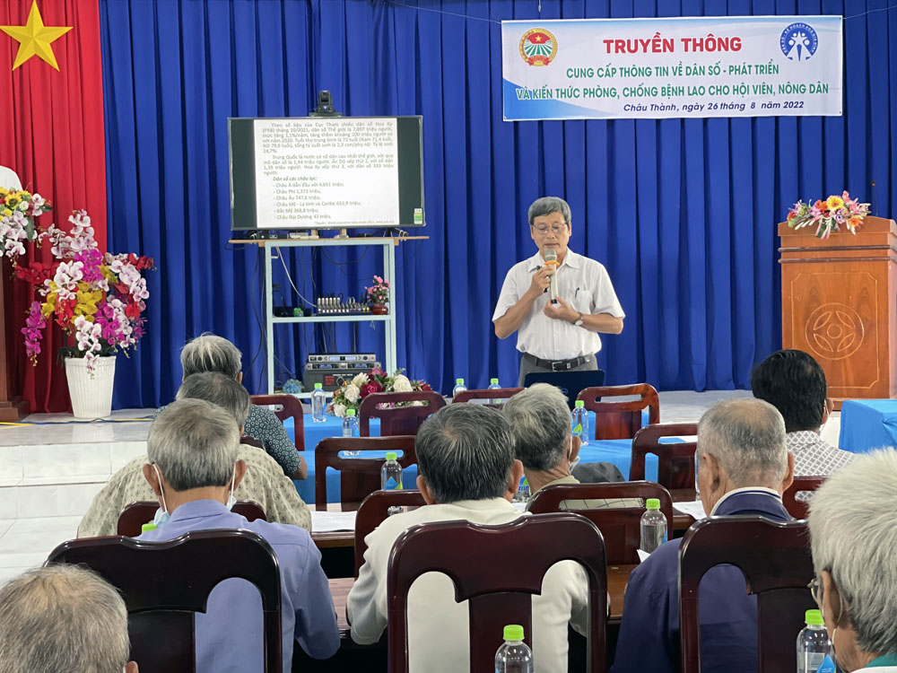 Tập huấn truyền thông về Dân số và công tác Phòng, chống bệnh lao. (29/08/2022 09:24)Ngày 26/8, Hội Nông dân tỉnh tổ chức lớp tập huấn truyền thông cung cấp thông tin về dân số - phát triển và kiến thức phòng, chống bệnh lao cho hội viên, nông dân tại UBND xã Vĩnh Hanh và UBND xã Bình Hòa, huyện Châu Thành