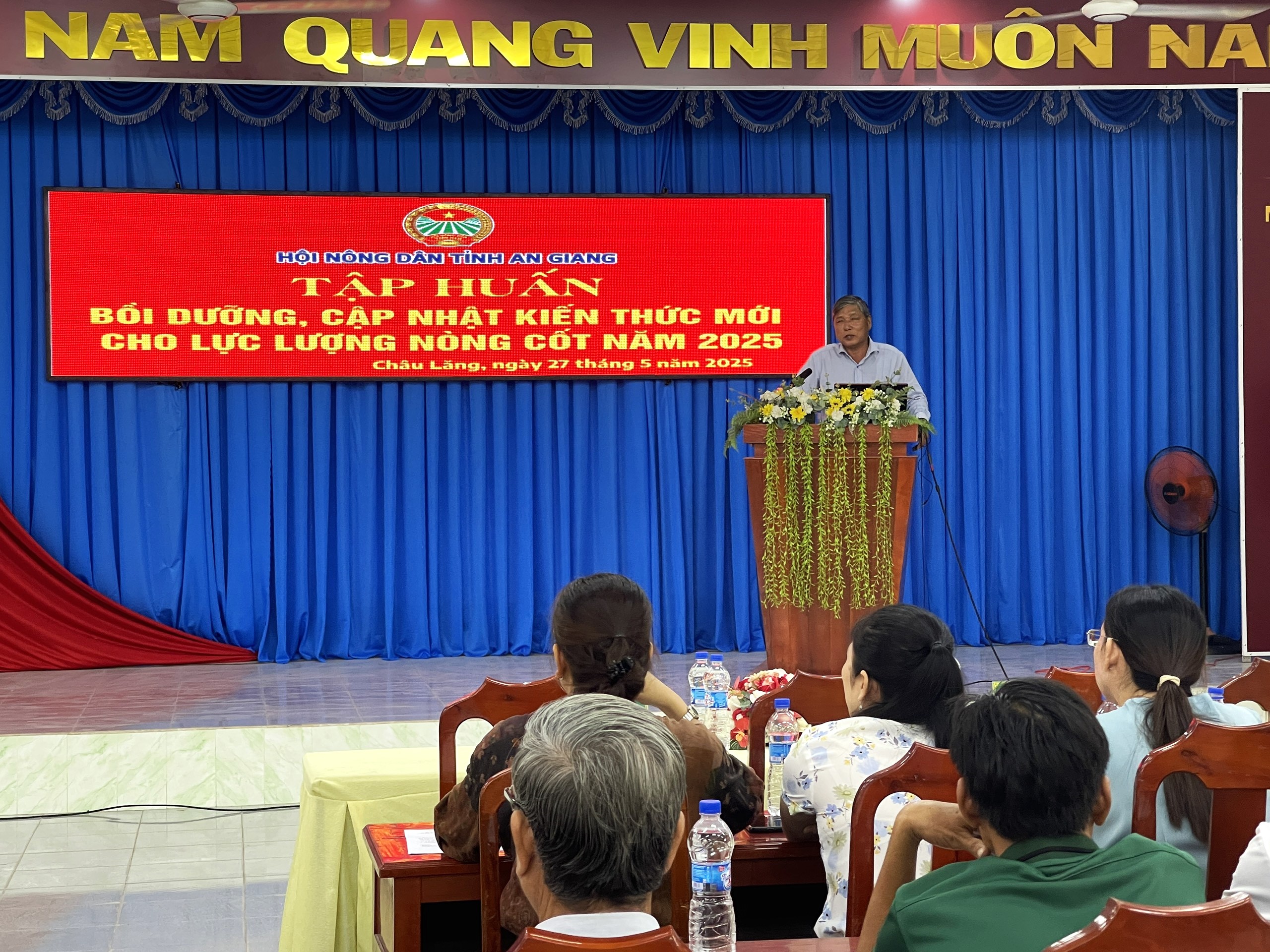 Lực lượng cán bộ, hội viên nòng cốt người dân tộc được bồi dưỡng cập nhật kiến thức mới. (27/05/2025 08:49)Ngày 27/05, tại Hội trường Ủy ban nhân dân xã Châu Lăng, huyện Tri Tôn, Hội Nông dân tỉnh An Giang tiến hành tổ chức lớp Bồi dưỡng cập nhật kiến thức mới cho lực lượng nòng cốt người dân tộc năm 2025.