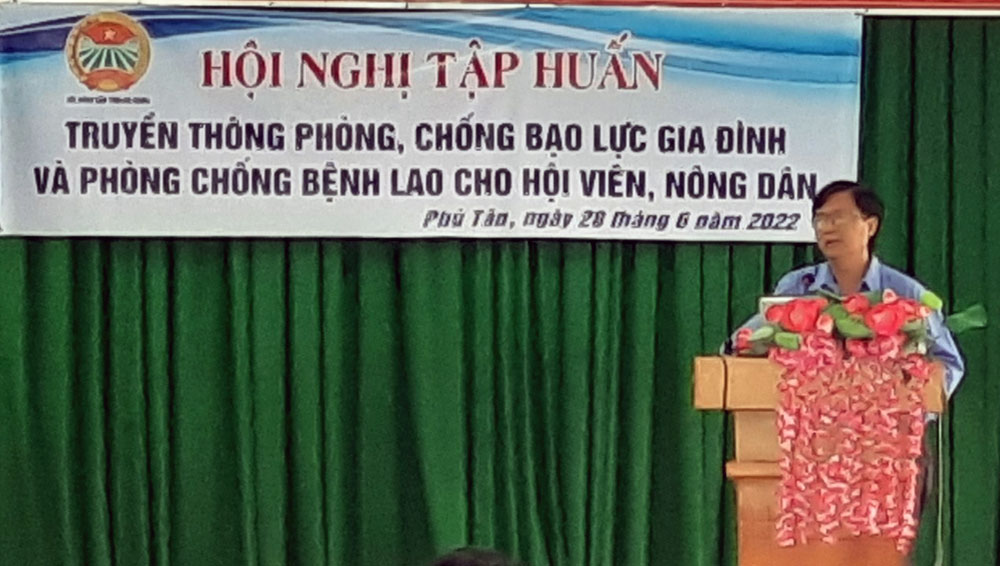 Hội nghị tập huấn truyền thông phòng, chống bạo lực gia đình và phòng chống bệnh lao. (29/06/2022 10:53)Sáng ngày 28/06/2022, Hội Nông dân Phú Tân Phối hợp với Hội Nông dân tỉnh tổ chức hội nghị tập huấn truyền thông phòng, chống bạo lực gia đình và phòng chống bệnh lao cho hội viên, nông dân nhân ngày gia đình Việt Nam.