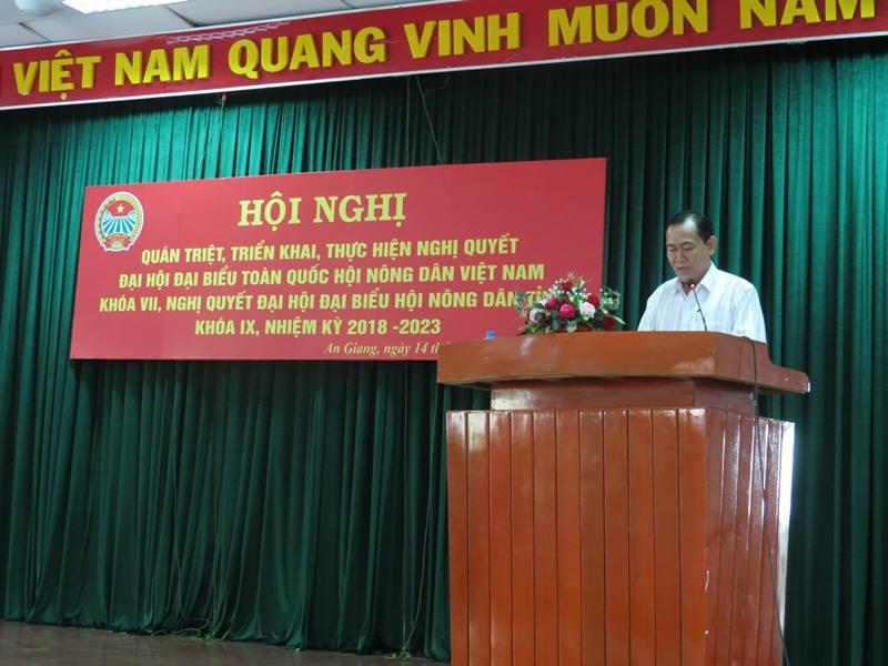 Hội nghị quán triệt, triển khai Nghị quyết Đại hội đại biểu toàn quốc Hội Nông dân Việt Nam khóa VII và Nghị quyết Đại hội đại biểu Hội Nông dân tỉnh An Giang khóa IX, nhiệm kỳ 2018-2023 (14/06/2019 21:05)Sáng ngày 14/6/2019, Ban Thường vụ Hội Nông dân tỉnh An Giang tổ chức Hội nghị quán triệt Nghị quyết Trung ương Hội và Hội Nông dân tỉnh An Giang cho trên 300 cán bộ chuyên trách cấp tỉnh, huyện và cơ sở